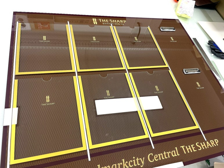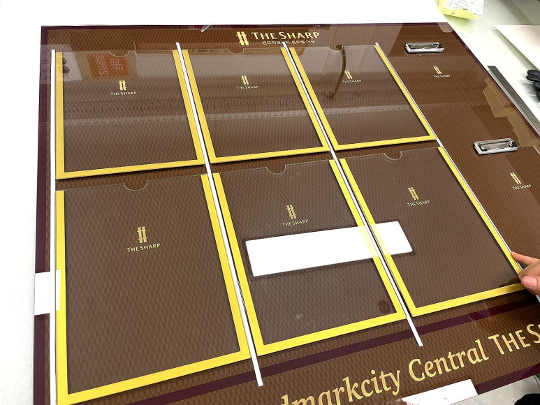 이렇게 출력이 된 시트에 강화유리와 포켓, 집게가 부착 되고 있어요 !!
