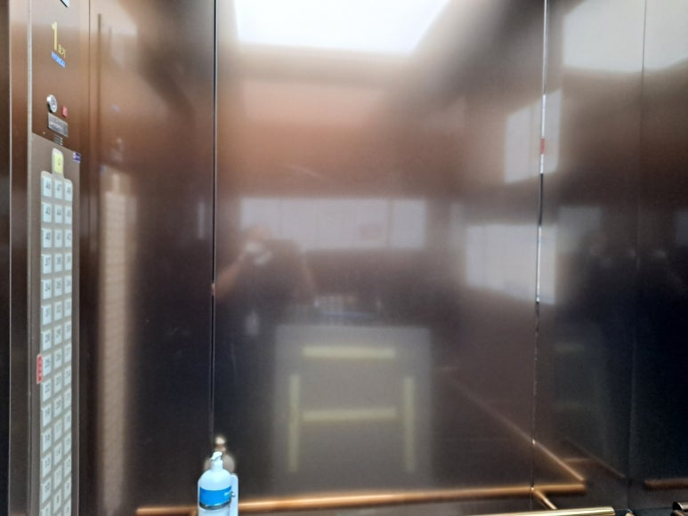 엘리베이터 내부 색깔과 맞는 게시판 색상으로