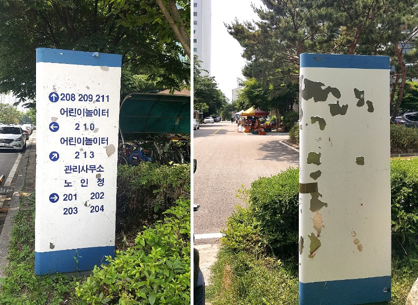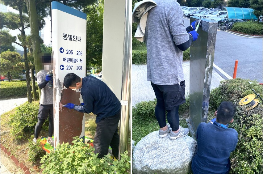 이렇게 곳곳의 동안내판 모두 기존에 있던 페인트 박리작업 후