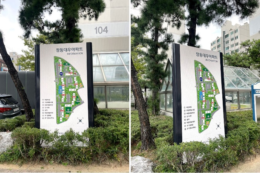오늘은 창동 대우 아파트 에서 주문해주신 단지 내 시설 안내판 단지안내판 동안내 표지판 단지표지판 과