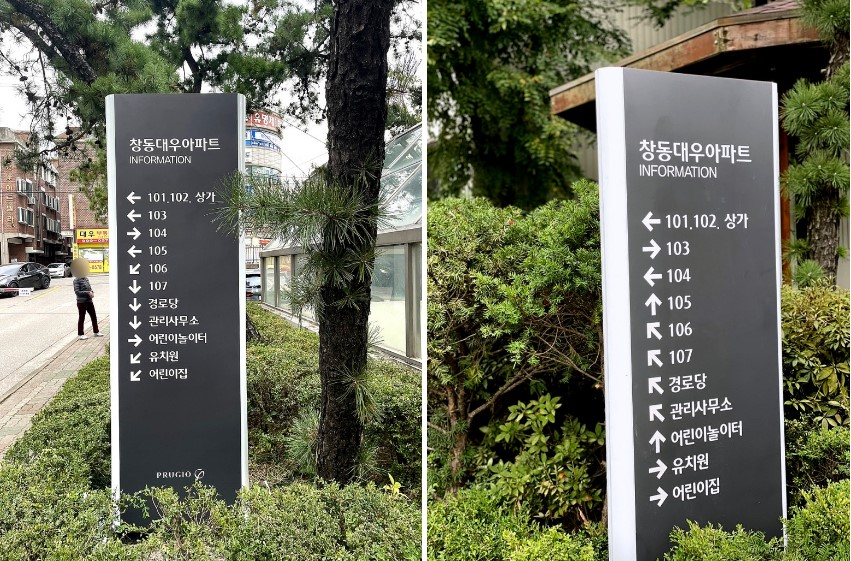 너무 깔끔한 디자인의 아파트 단지 내 표지판 이네요 !!