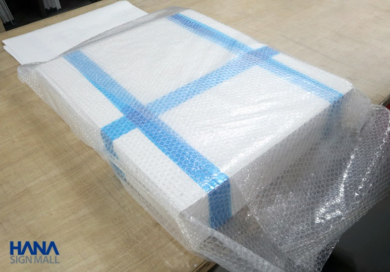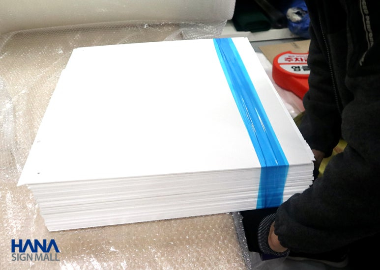 이제 타공이 모두 끝난 포맥스 안내판들을 포장 하는데요,