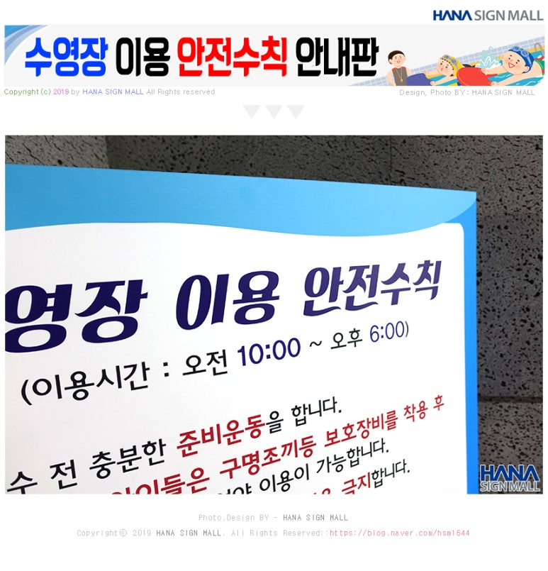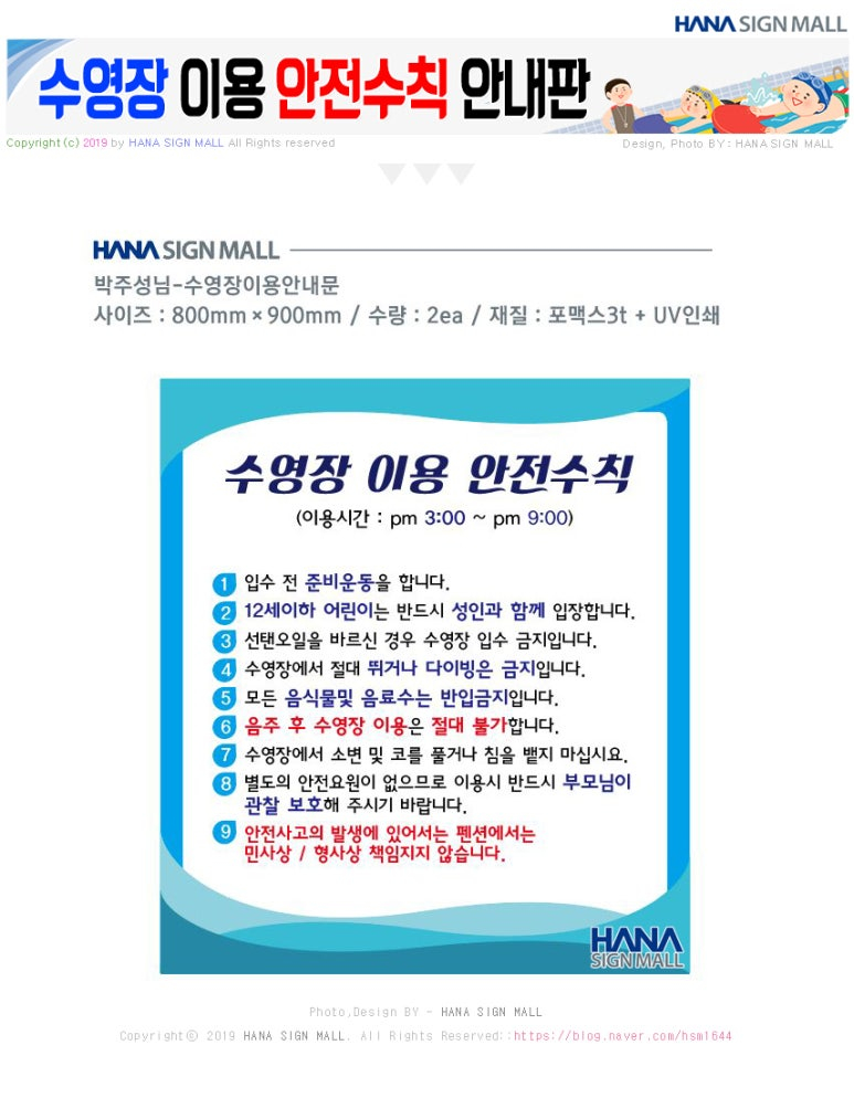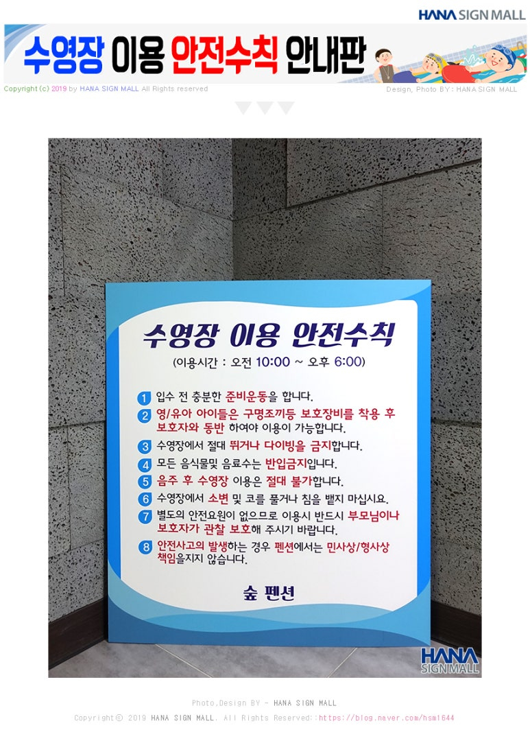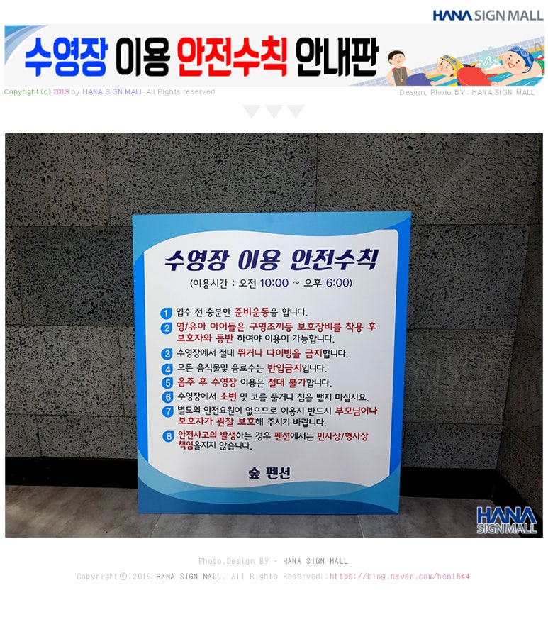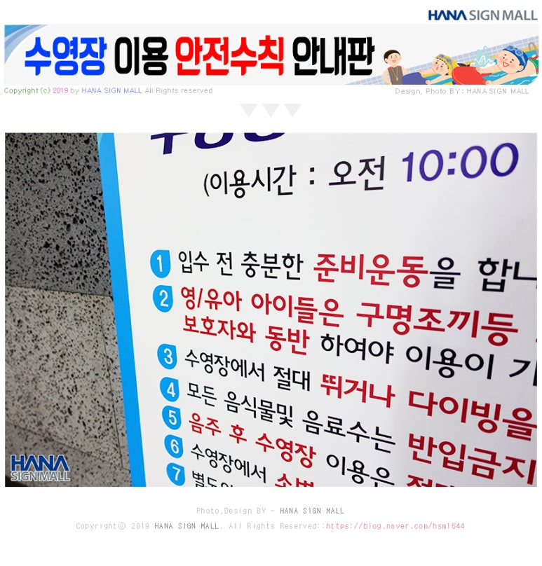 수영장 안전수칙 이용안내 안내문 제작완료!! 수영장 이용수칙 안내판은 하나사인몰에서~