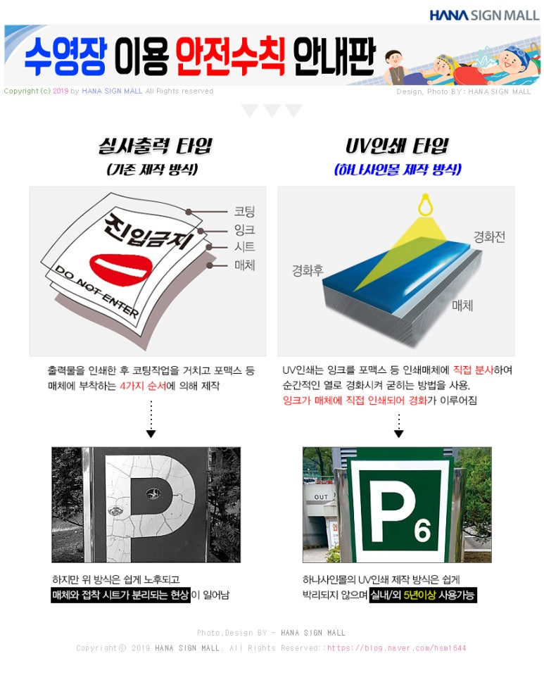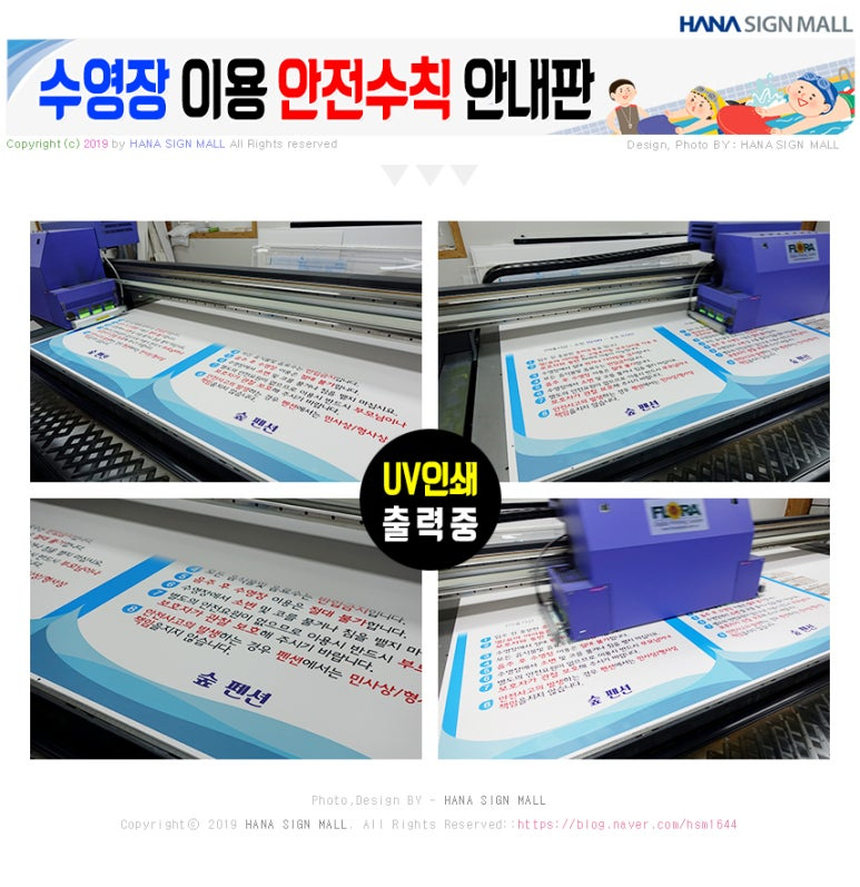 저희 하나사인몰의 수영장 안전수칙 안내판은 모두 UV인쇄로 제작을 해드리고 있습니다~ ^^