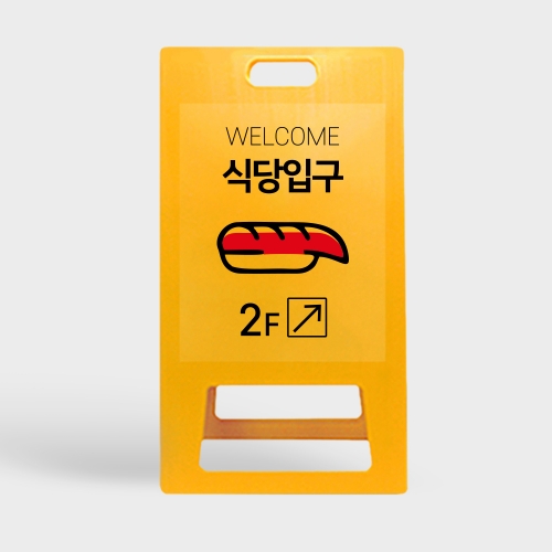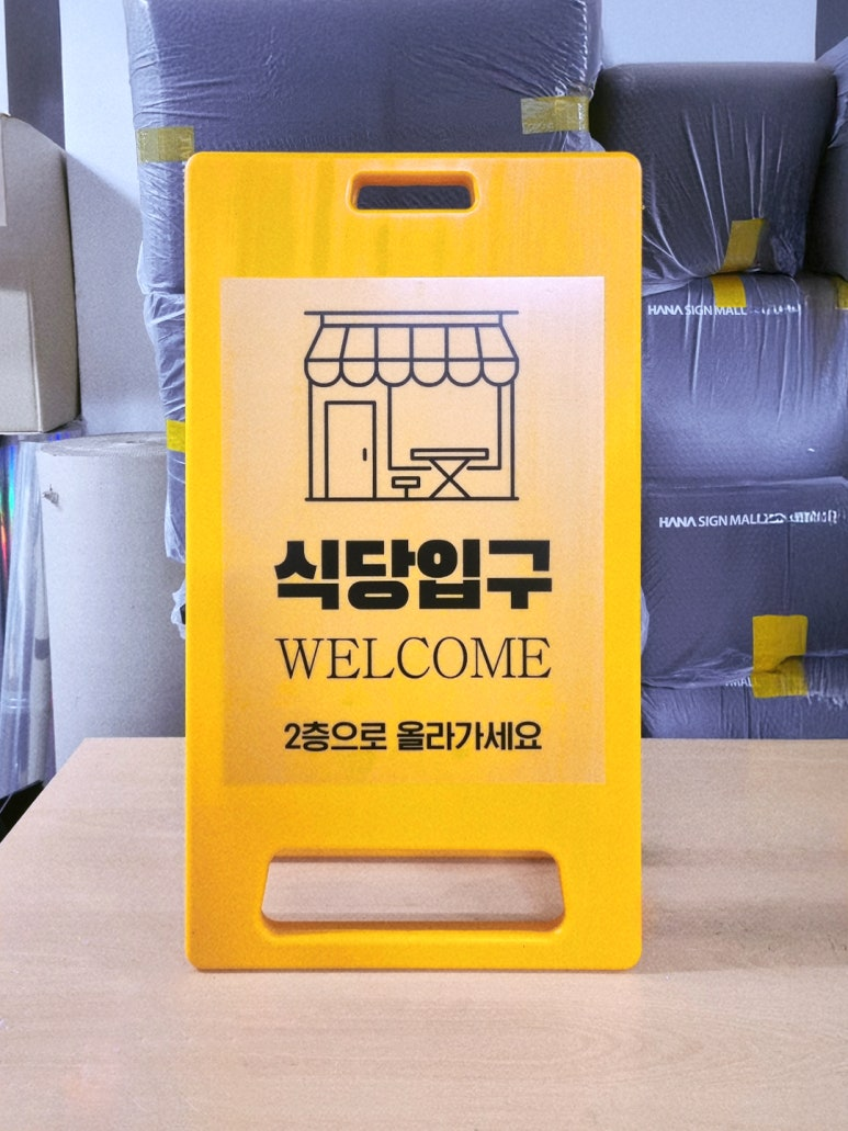 밝은 노랑색 입간판은 멀리서도 눈에 잘 띄어 홍보 효과가 큽니다~