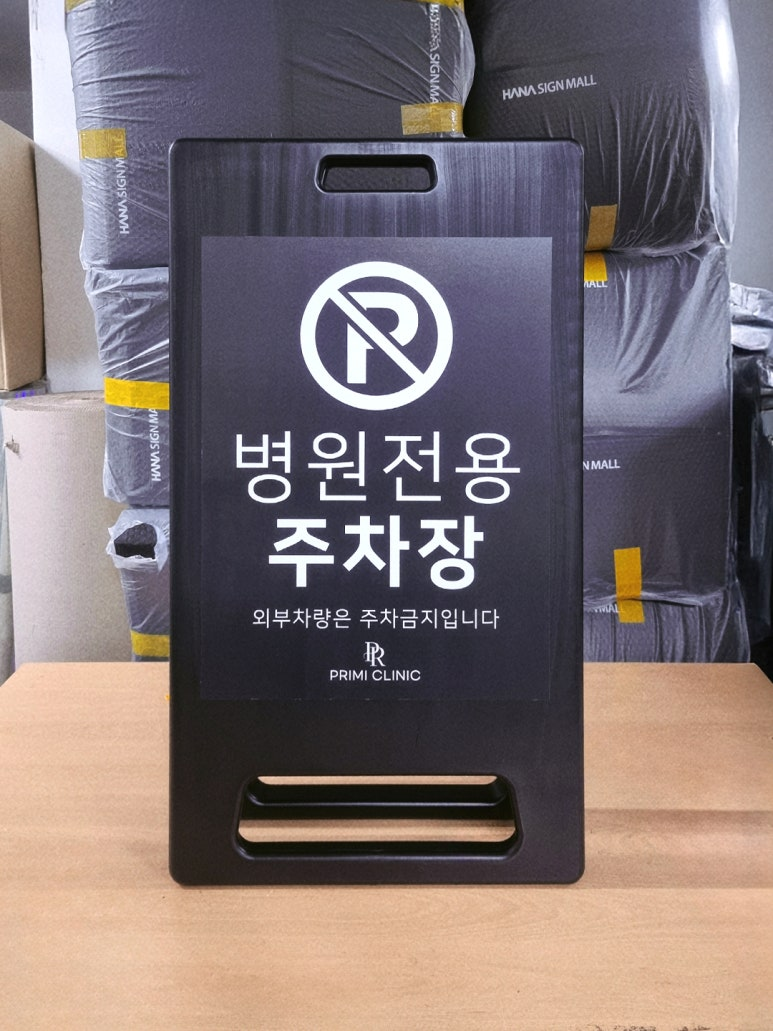 그래서 전용 주차장 안내 입간판은 필수예요!