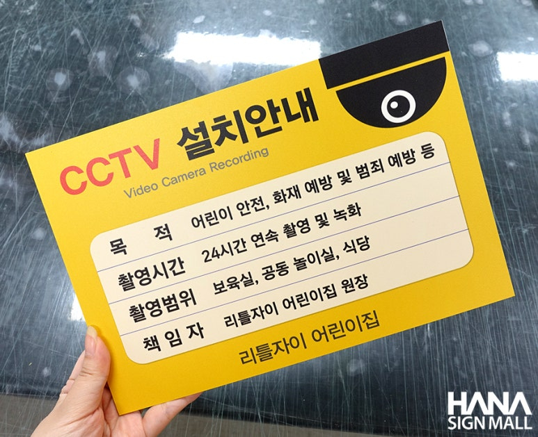 안녕하세요~ 하나사인몰 입니다 ^^ 오늘은 cctv가 있다면 필수로!! 설치해야하는 cctv작동중 안내판 입니다