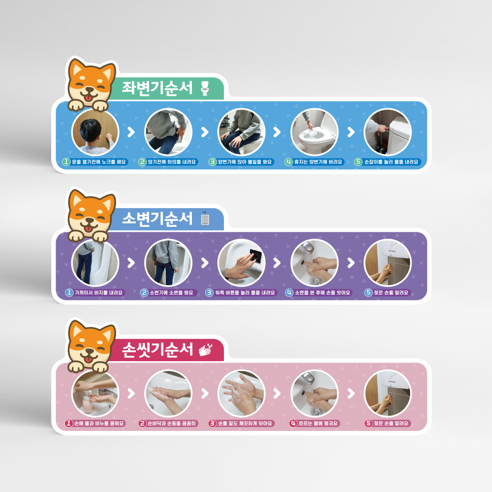 이번 제품은 손씻기6단계와 화장실 사용순서, 좌변기 순서로 구성된 세트 상품인데요