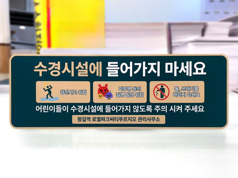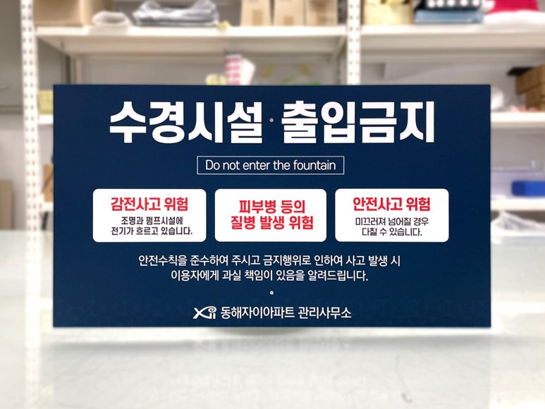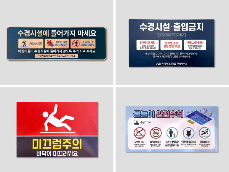 마지막으로 소개해 드릴 상품은 수경시설 출입금지 안내판 입니다~!