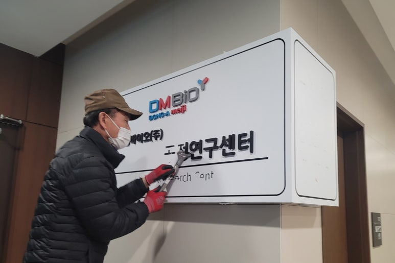교체 작업 전 기존에 있는 글자들을 제거하는 모습입니다.