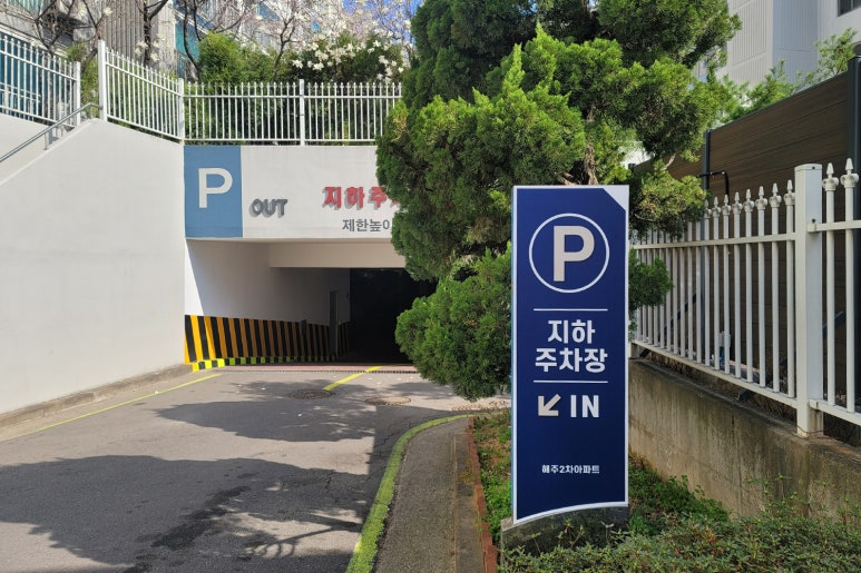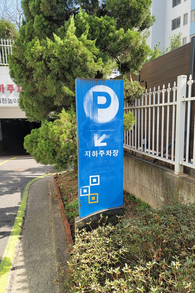 지하 주차장 입구 표지판 시공전 모습입니다.