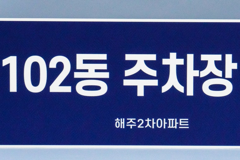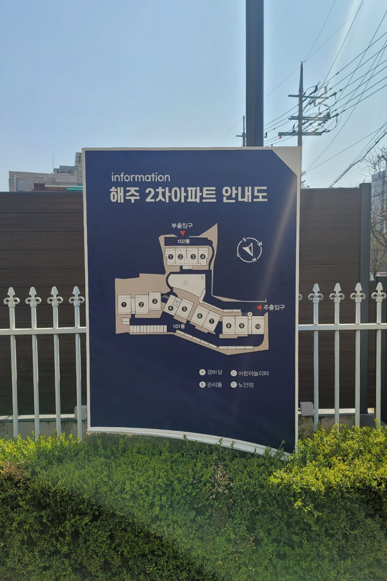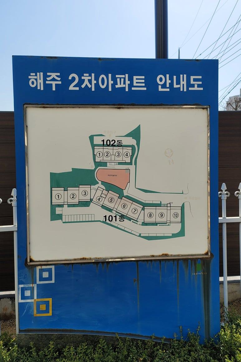 주차장 밖에 설치된 아파트 동 위치 안내판입니다.