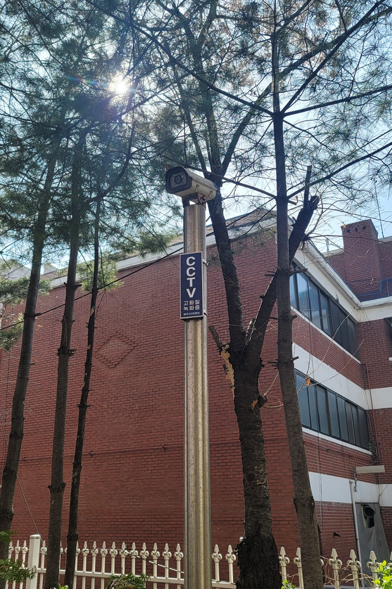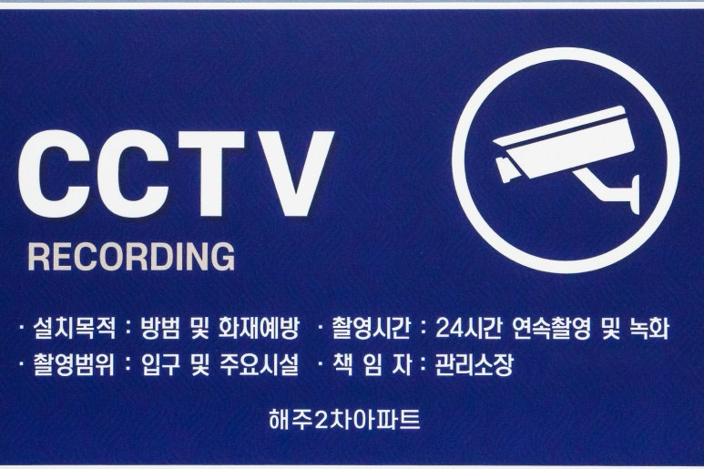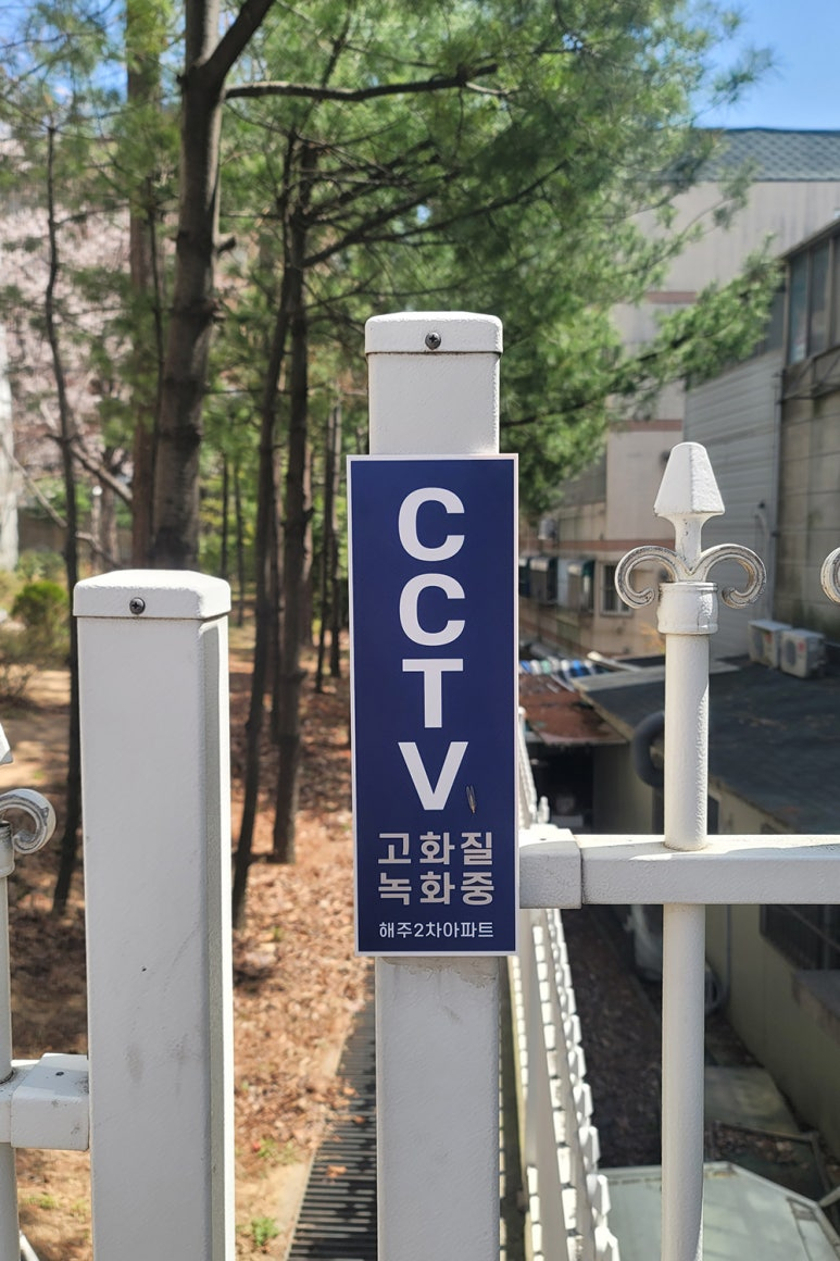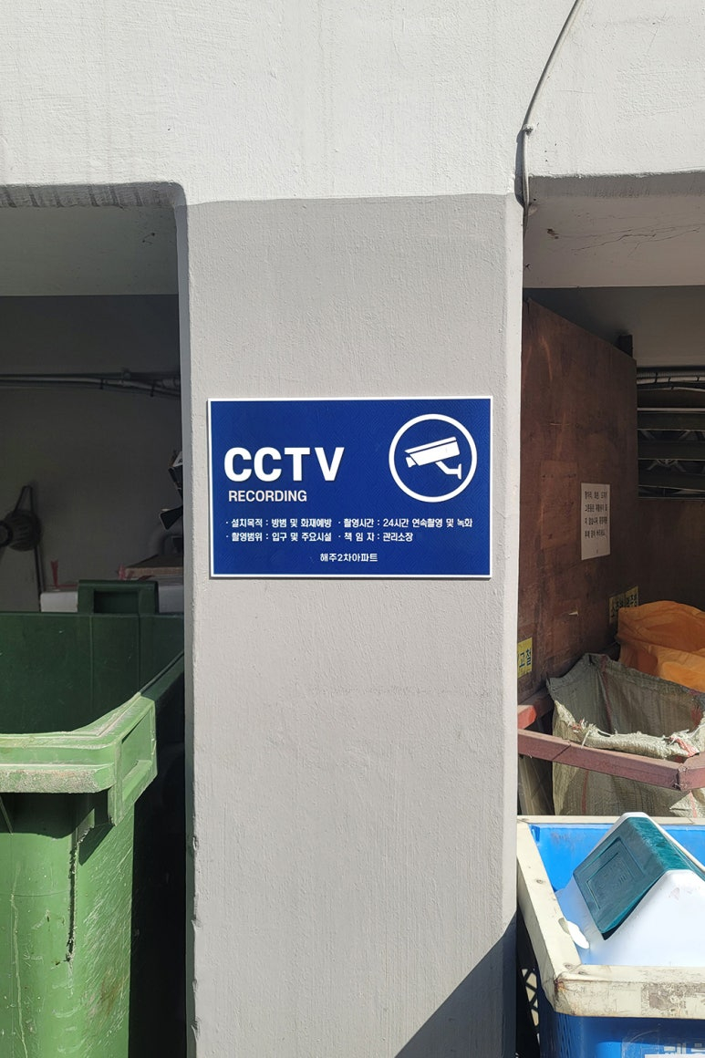 아파트 관리 와 같은 목적으로 CCTV를 설치함을 알리는 표지판입니다.