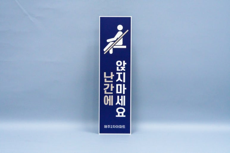 정자 말고도 난간이 있는 장소에 설치하여 사고예방이 가능한 표지판입니다.