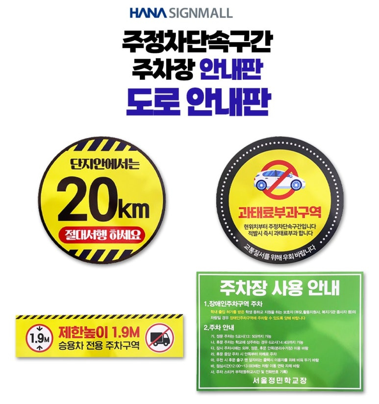 단지 내 서행, 주차장 사용 안내판 등을