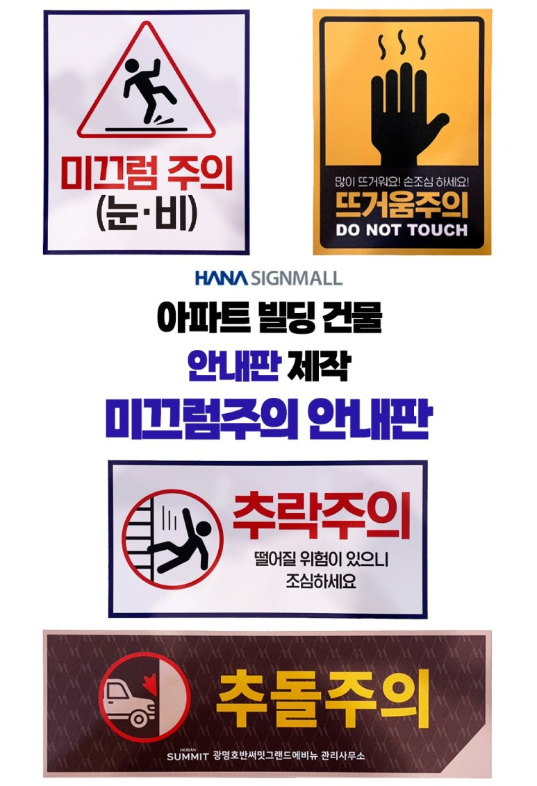 미끄럼주의, 추락주의, 추돌주의, 뜨거움주의 안내판을