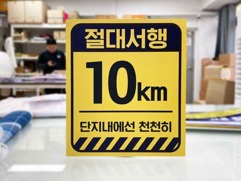 그래서 사고를 사전에 막기 위해 절대 서행 안내판을 제작했습니다~
