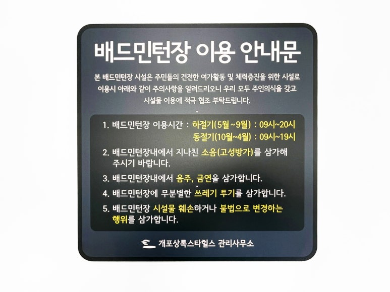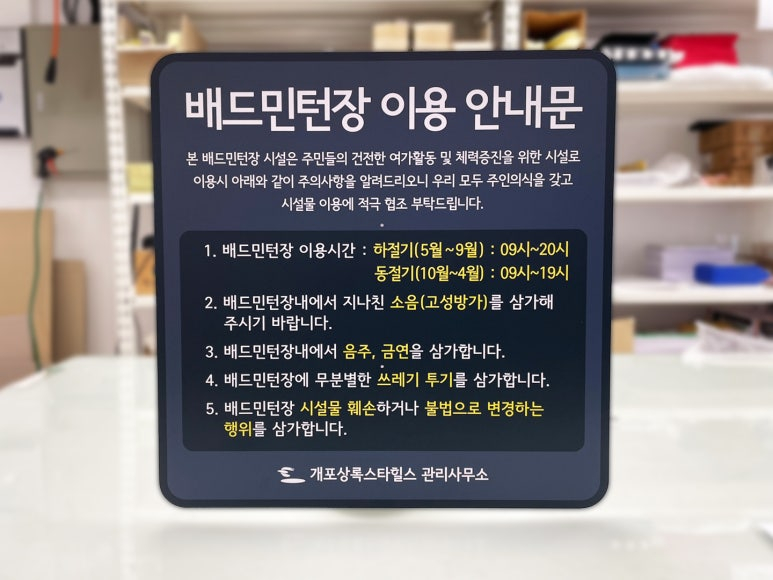 배드민턴장 이용시간 안내판을 소개해 드렸습니다!
