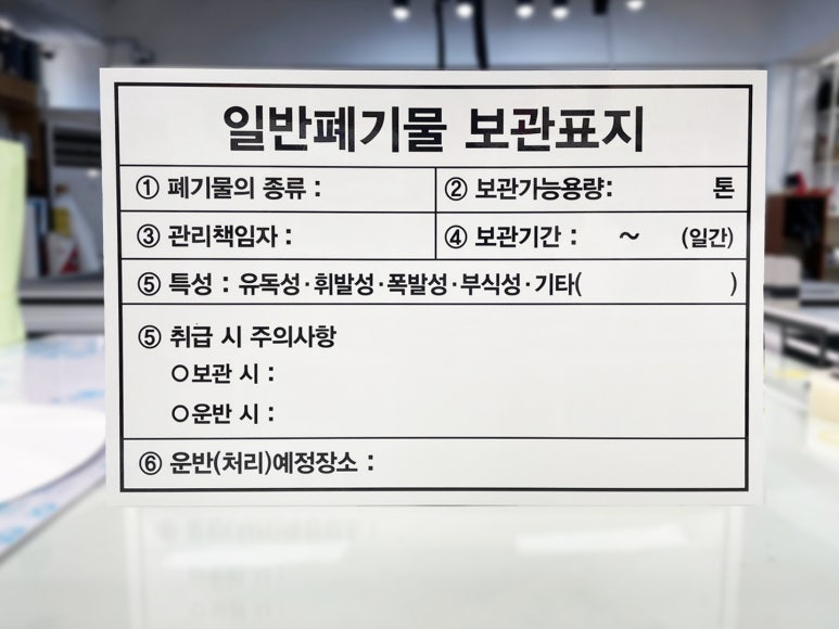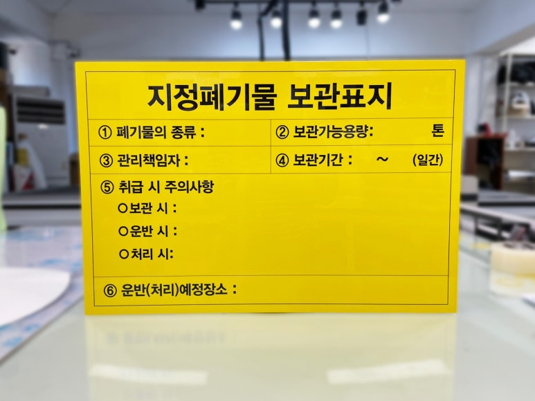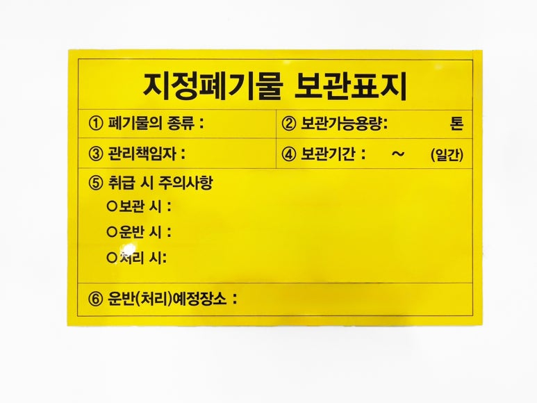 보관 표지는 지정폐기물을 안전하게 보관하고 처리하도록 제작되었습니다~