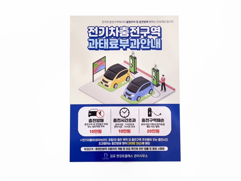 전기차 충전 구역 과태료 부과 안내판을