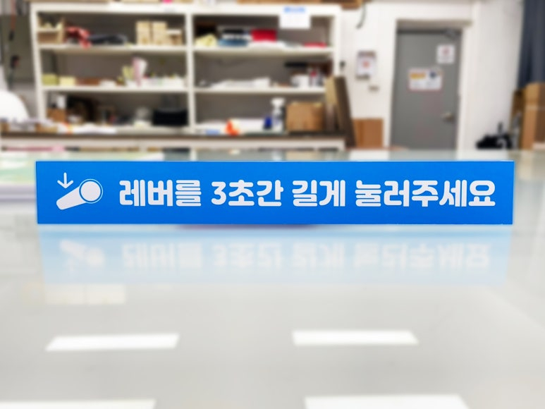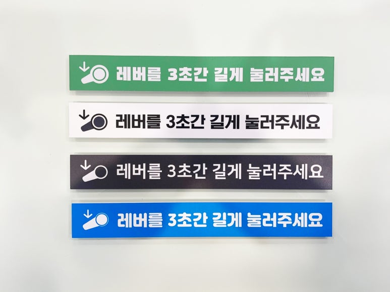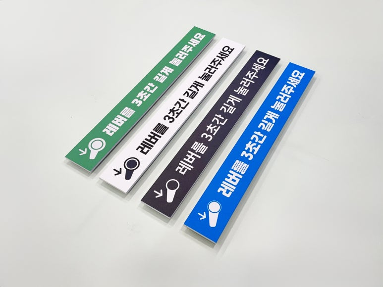 마지막으로 소개해 드릴 상품은 화장실 레버 표지판입니다~!