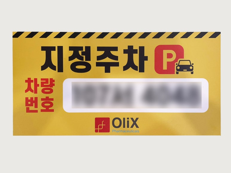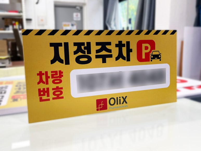 지정주차 차량 번호판을 넣어 제작해 드렸고,