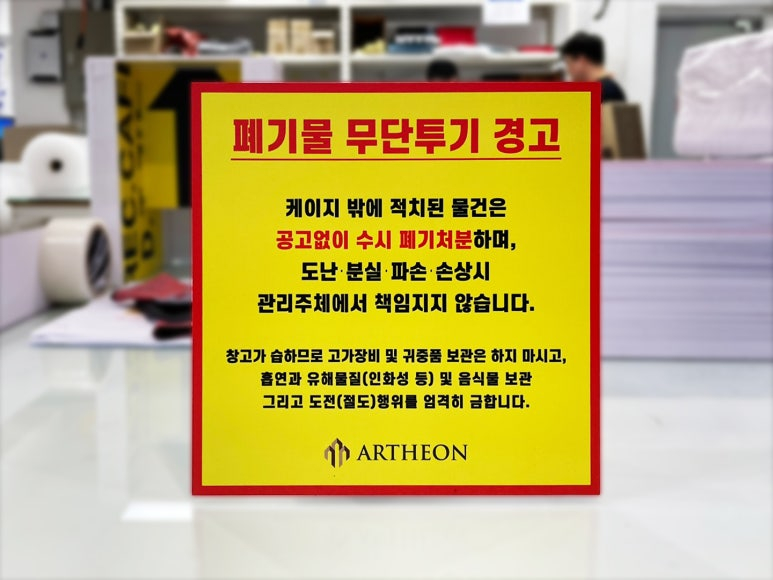 다음으로 소개해 드릴 상품은 무단투기 경고 안내판입니다~!