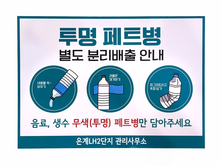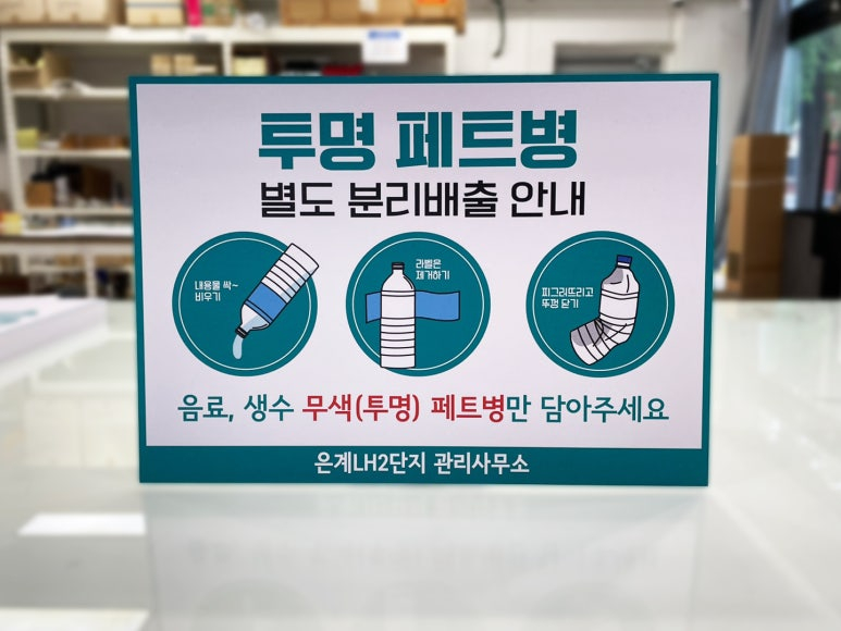 마지막으로 소개해 드릴 상품은 투명페트병 분리배출 안내판입니다~!