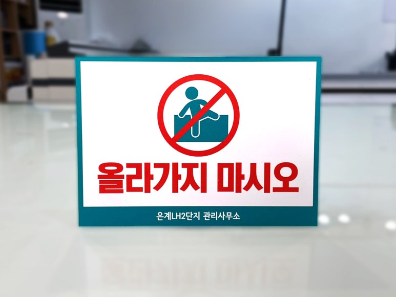 옥상, 난간 등 추락 위험이 있는 주변에 설치하는 안내판인데요