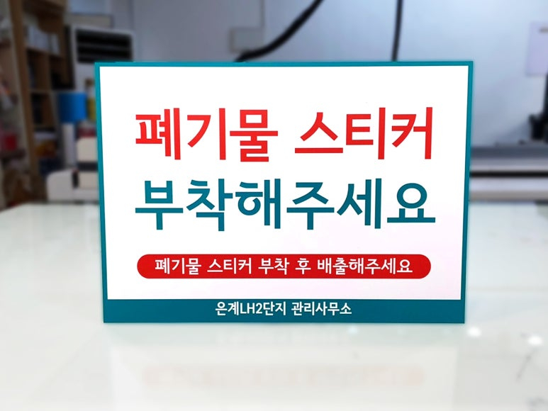 폐기물 스티커 부착 안내판을 제작 해드렸습니다~