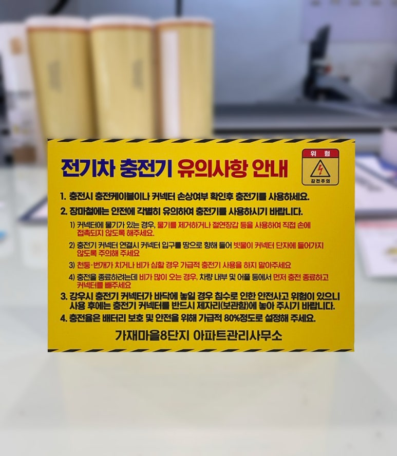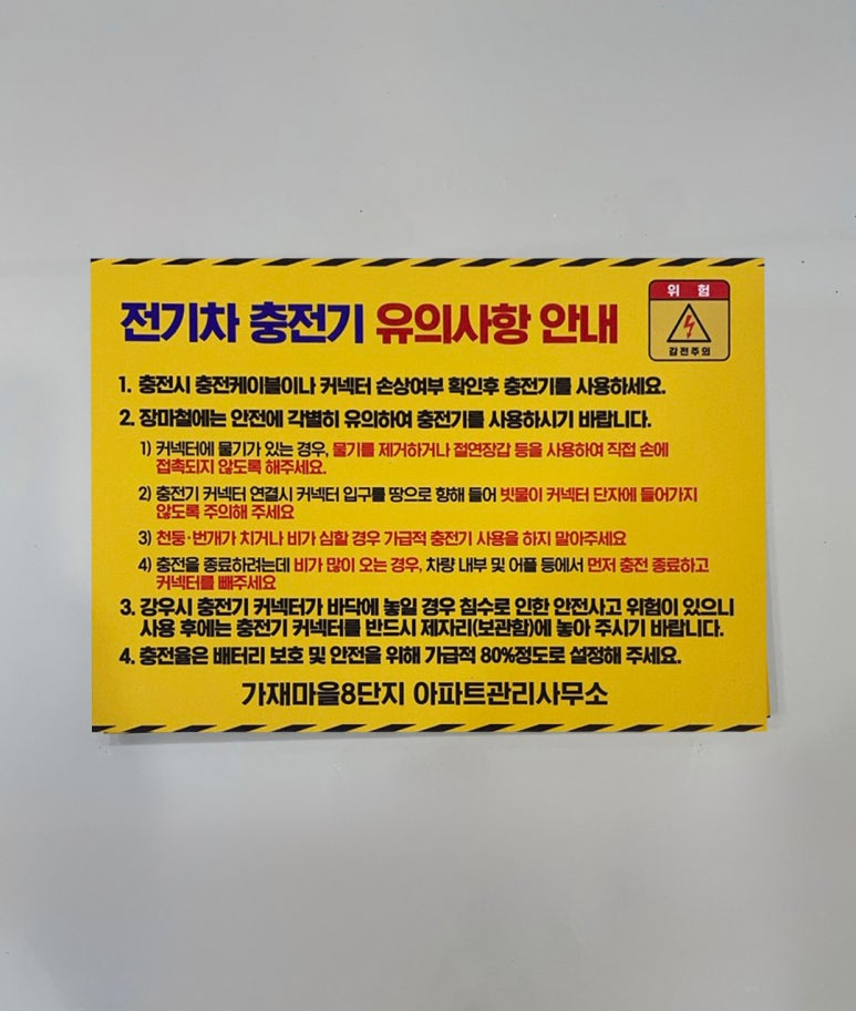 주문해 주신 전기차 충전기 유의사항 안내판입니다~!