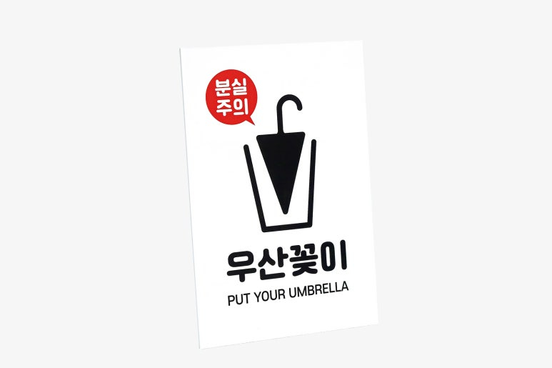 가장 먼저 보여드릴 상품은 우산꽂이 안내판입니다~!