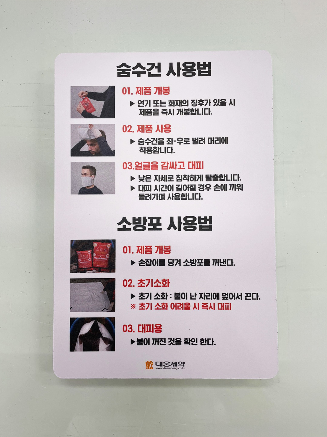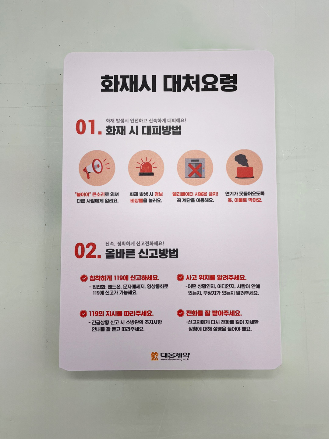 다음은 대웅제약에서 주문해 주신 화재 시 대처요령 안내판입니다~!