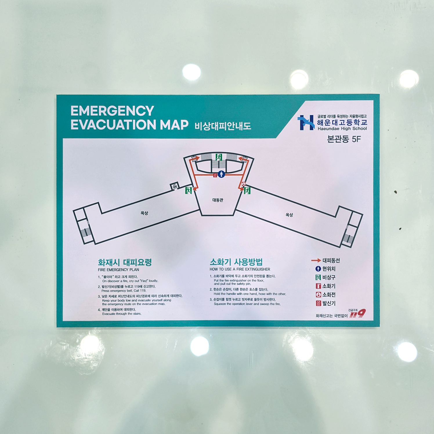 다음은 해운대 고등학교에서 주문해 주신 피난안내도 안내판입니다~!