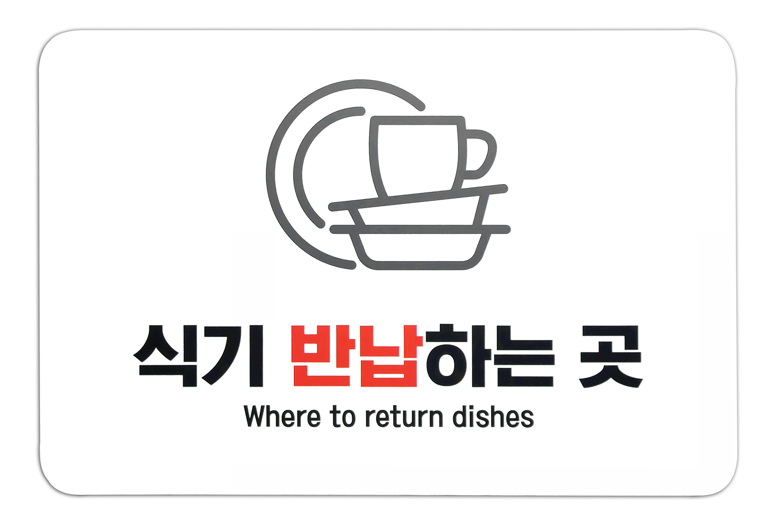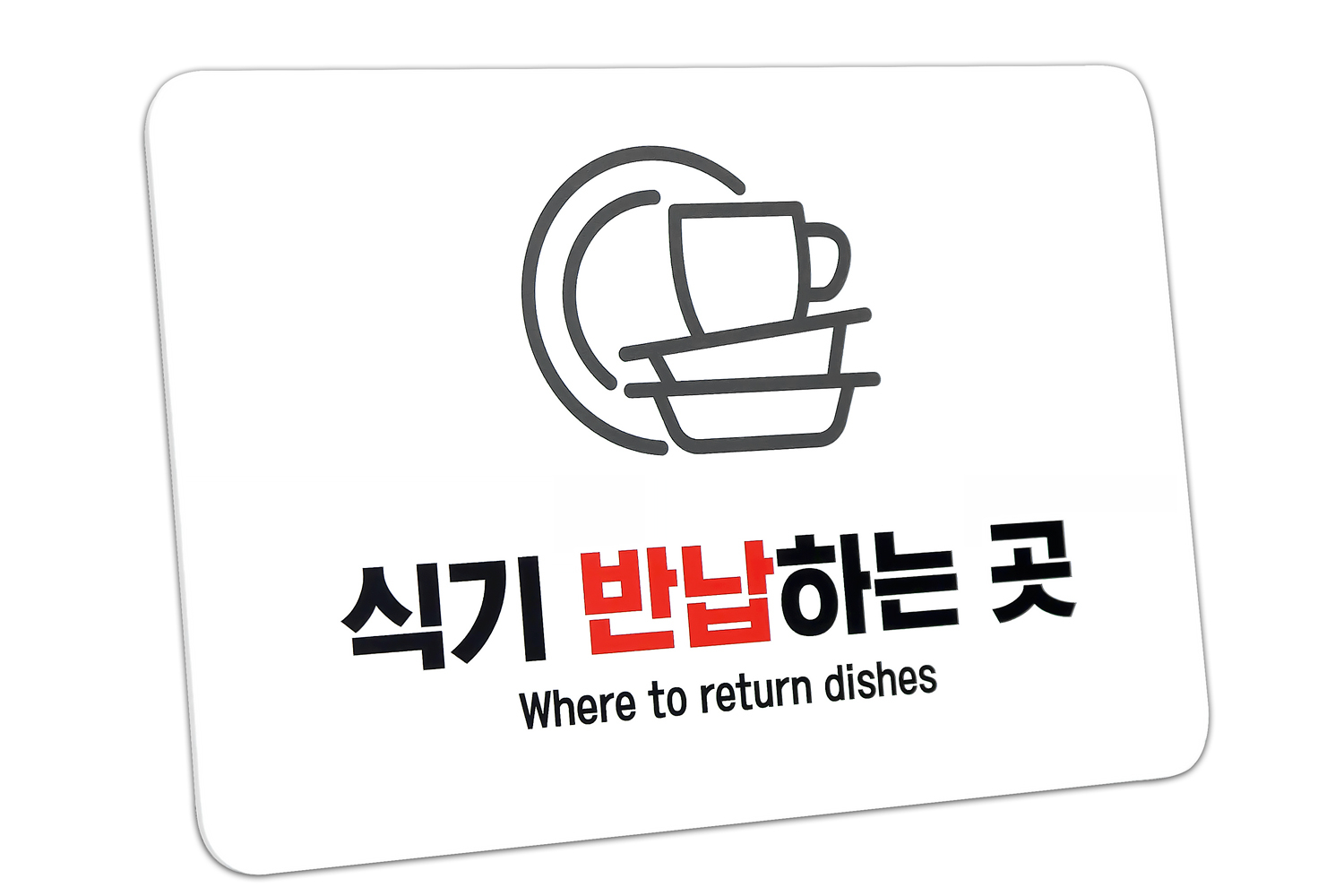 오늘은 셀프코너 안내판, 식기반납 안내판 등