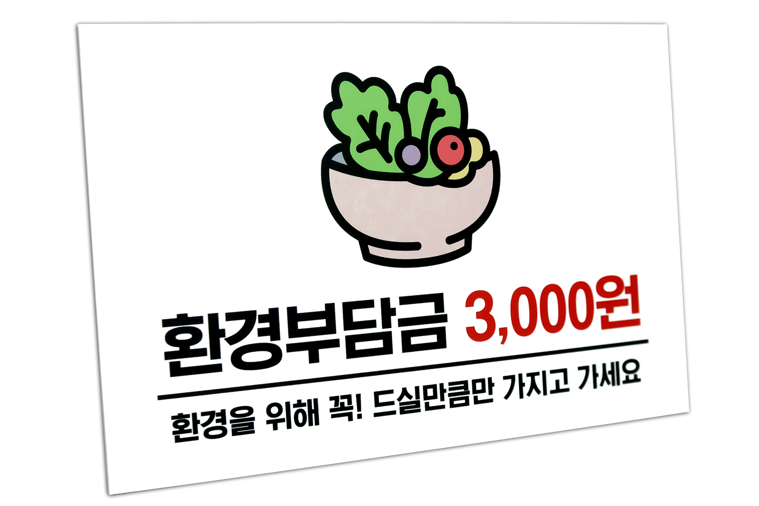 많은 음식을 남길 시 환경을 위해 환경부담금이 부과됨을 안내하는 안내판으로