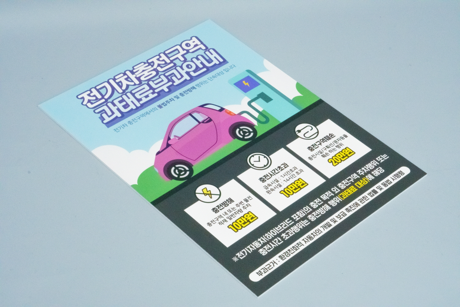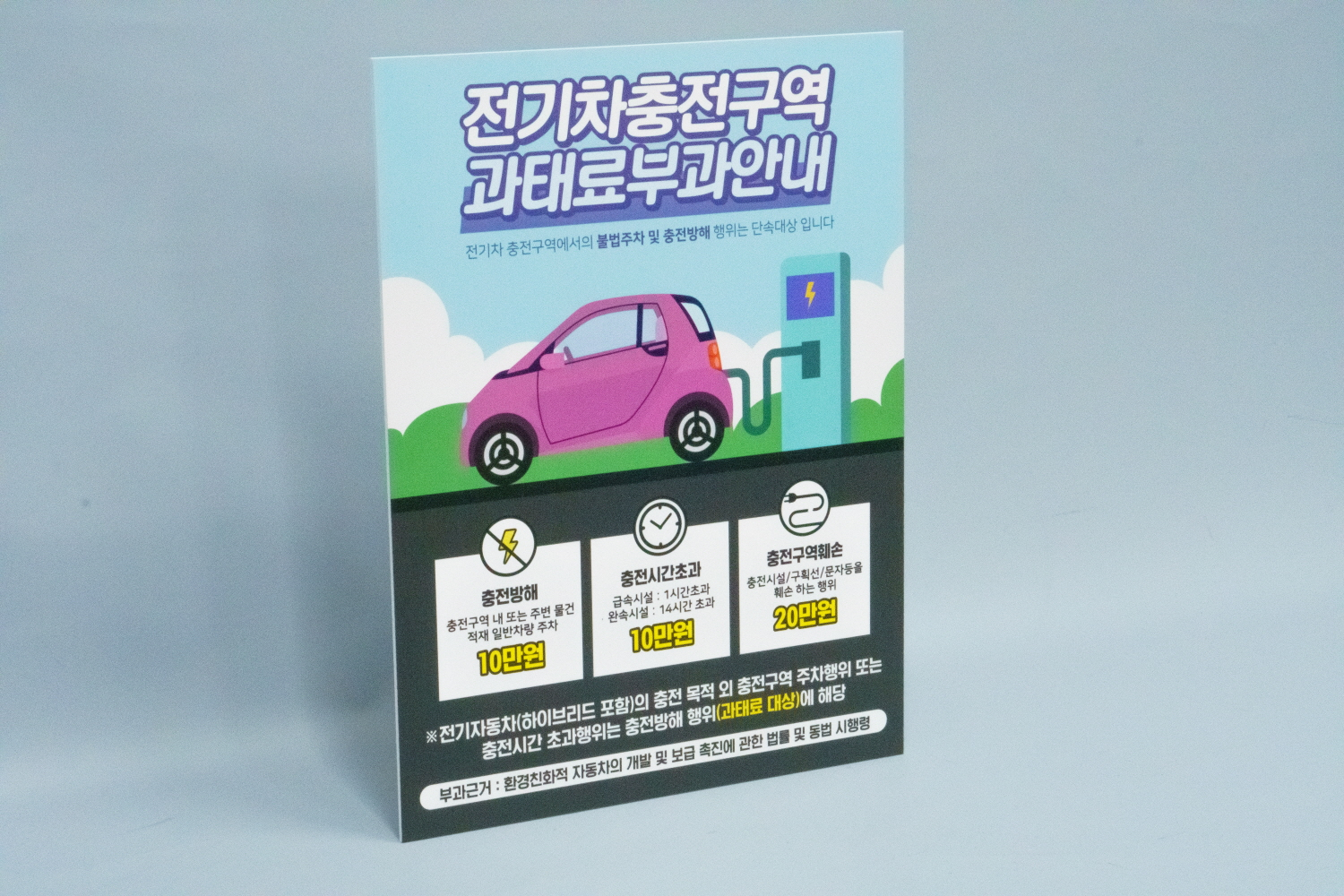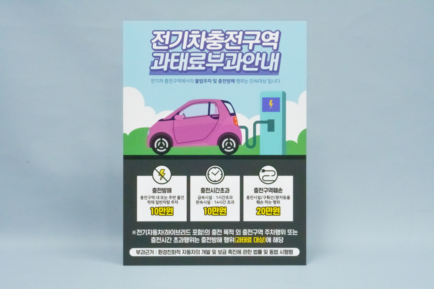전기차 충전 구역 및 과태료 부과 안내판입니다!