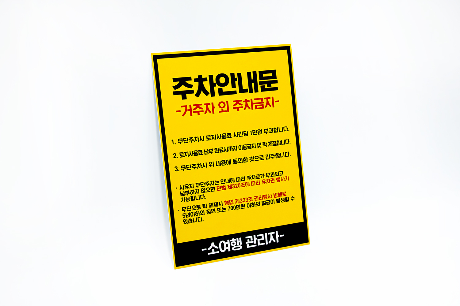주차장에서 사용할 수 있는 주차 관련 안내판