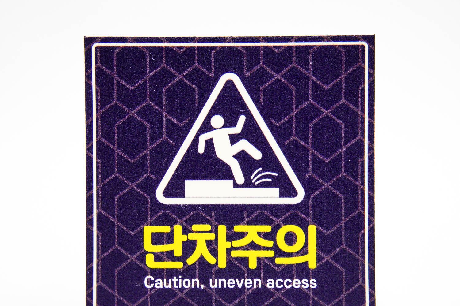 먼저 소개해 드릴 상품은 사고예방을 위한 단차주의 안내판 입니다.