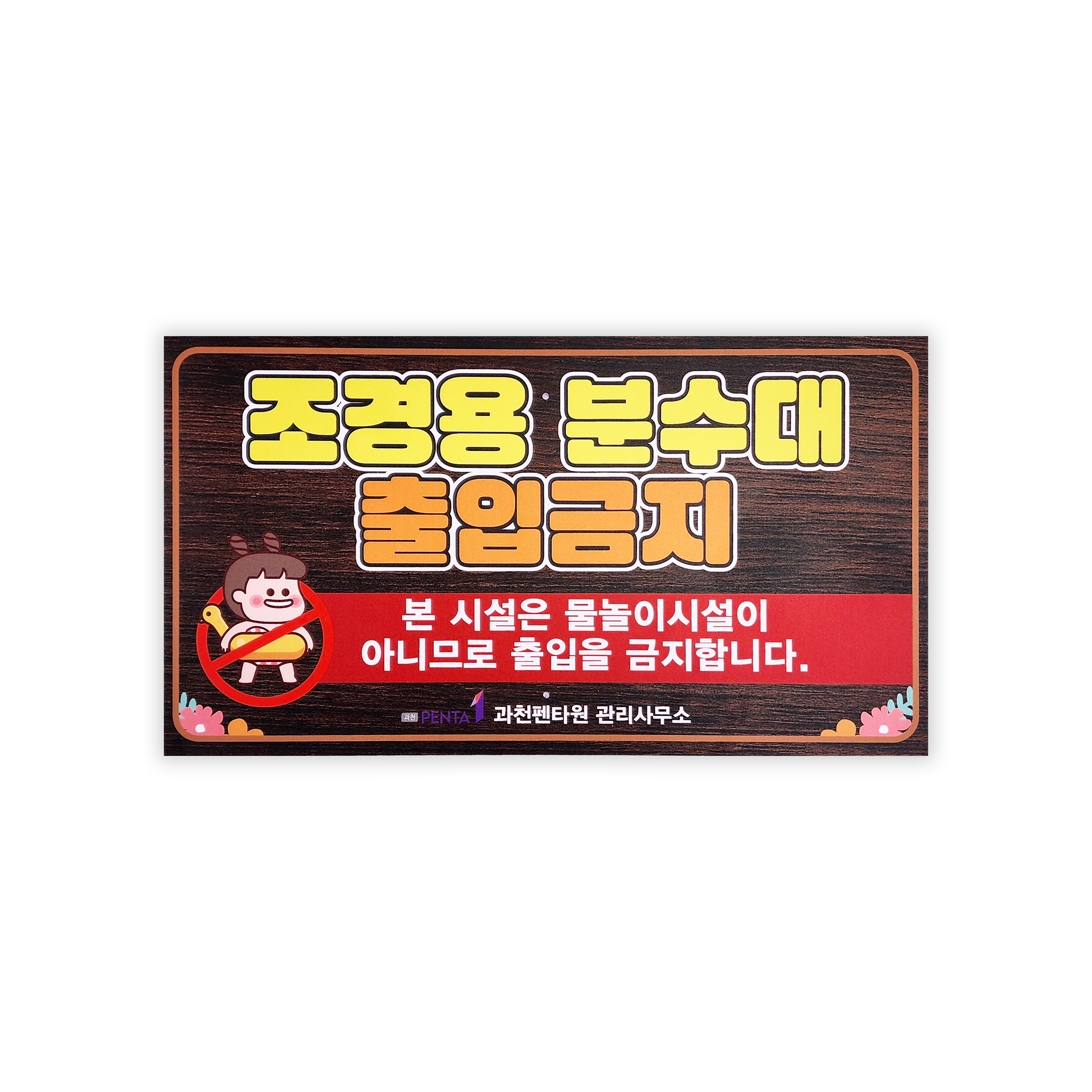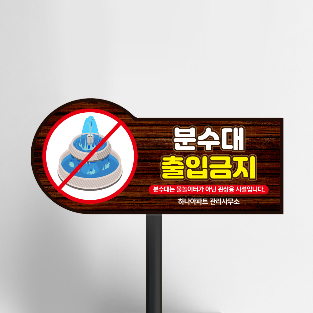 먼저 조경용 분수대 출입금지 팻말입니다