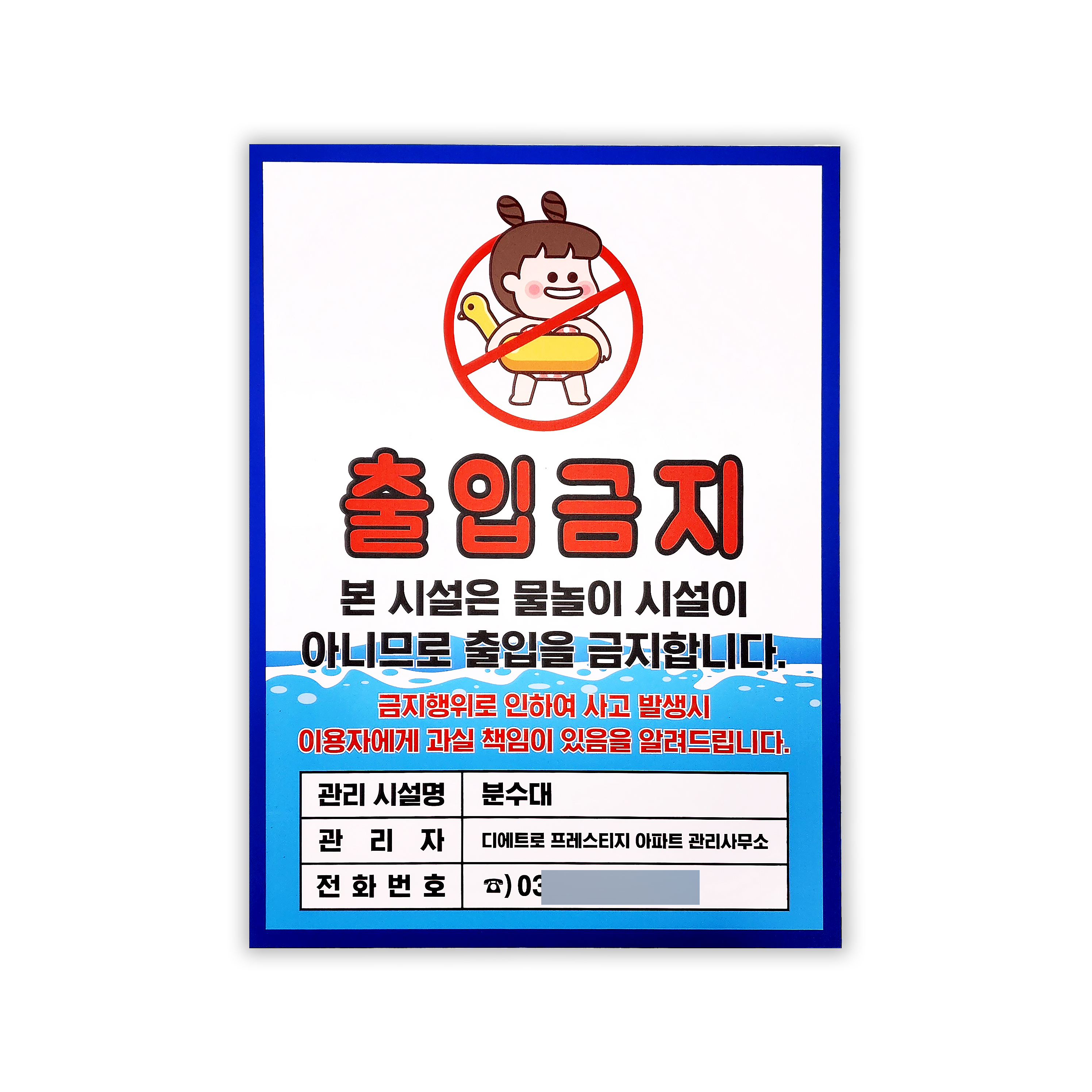 여름철 분수대 출입금지 팻말 등