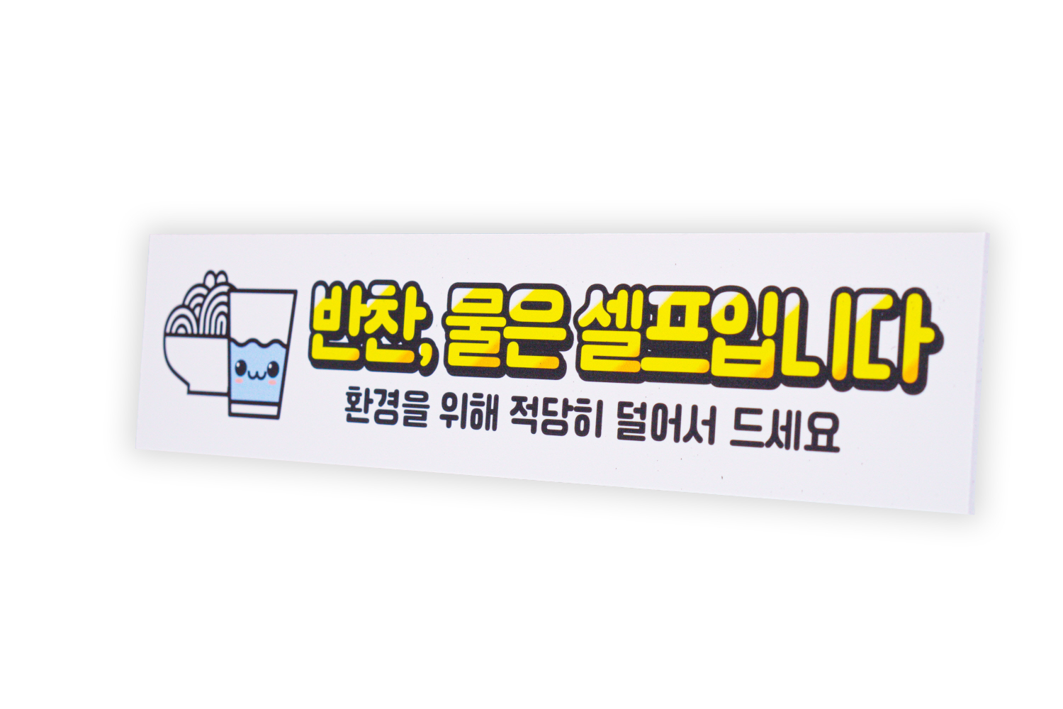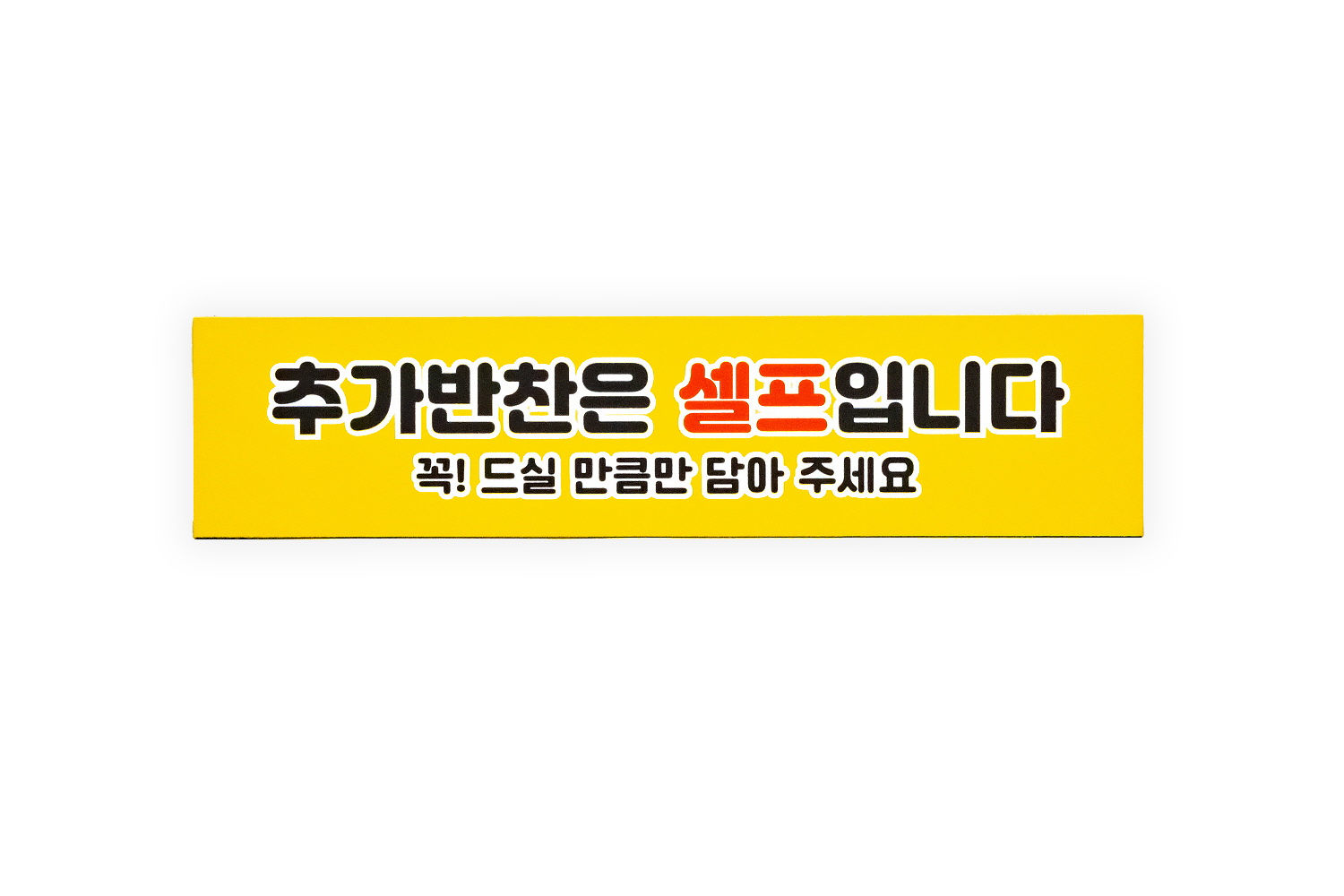 그런 경우 위와 같은 반찬,물 셀프 안내판으로 알릴 수 있어요 !