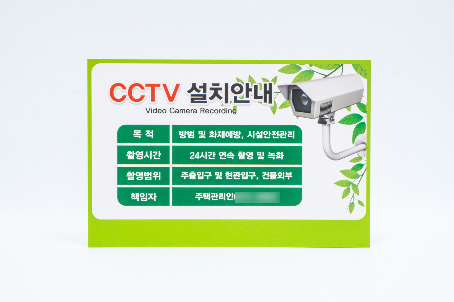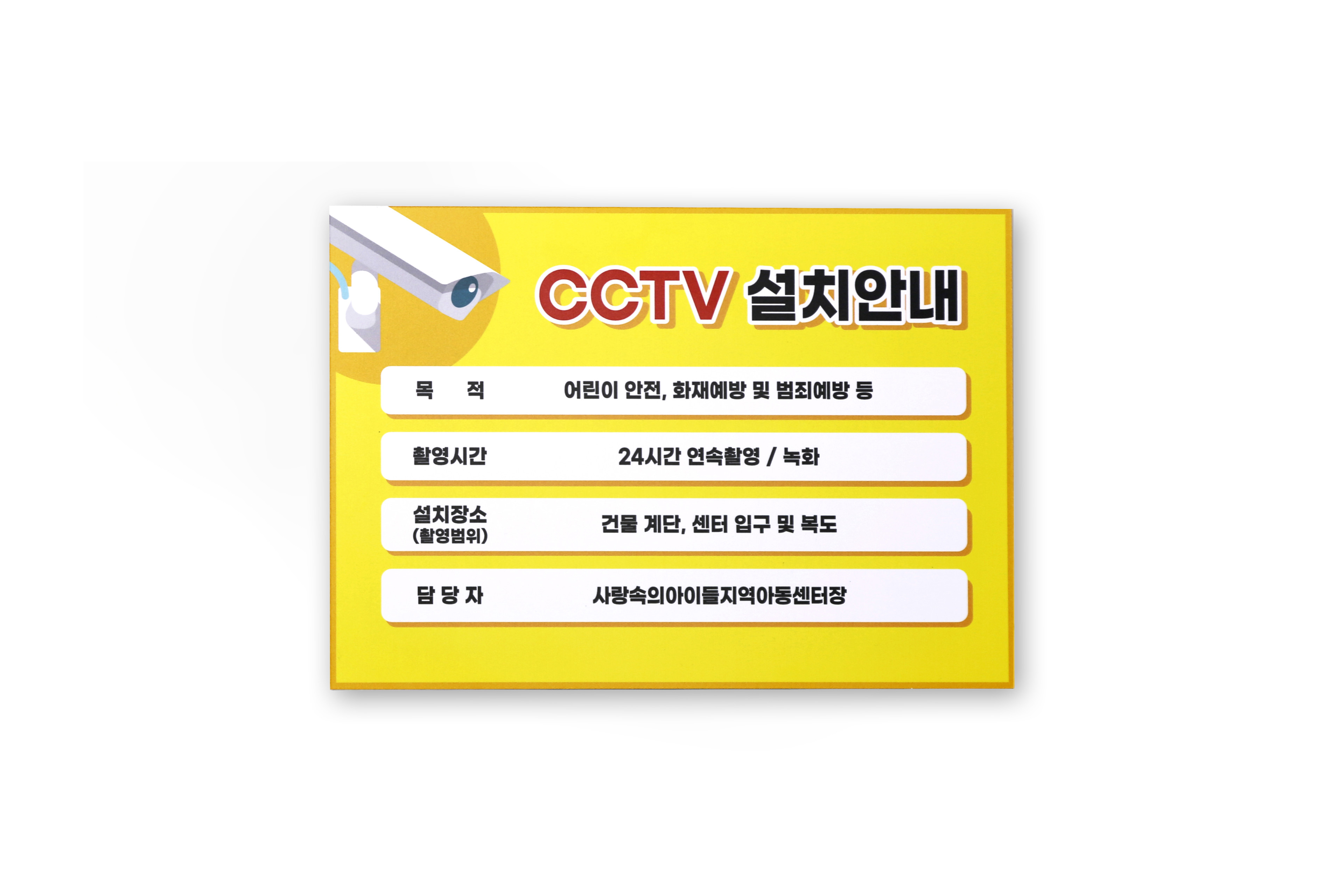 촬영중임을 알릴 수 있는 CCTV 안내판