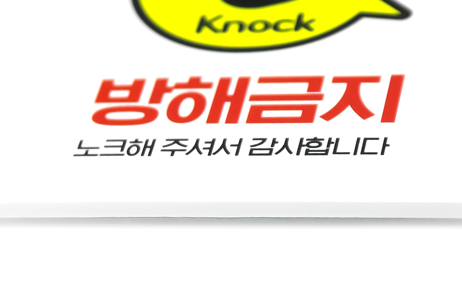 UV 인쇄 방식으로 제작하여 잉크가 쉽게 박리되지 않아 실내외 5년 이상 사용 가능합니다!