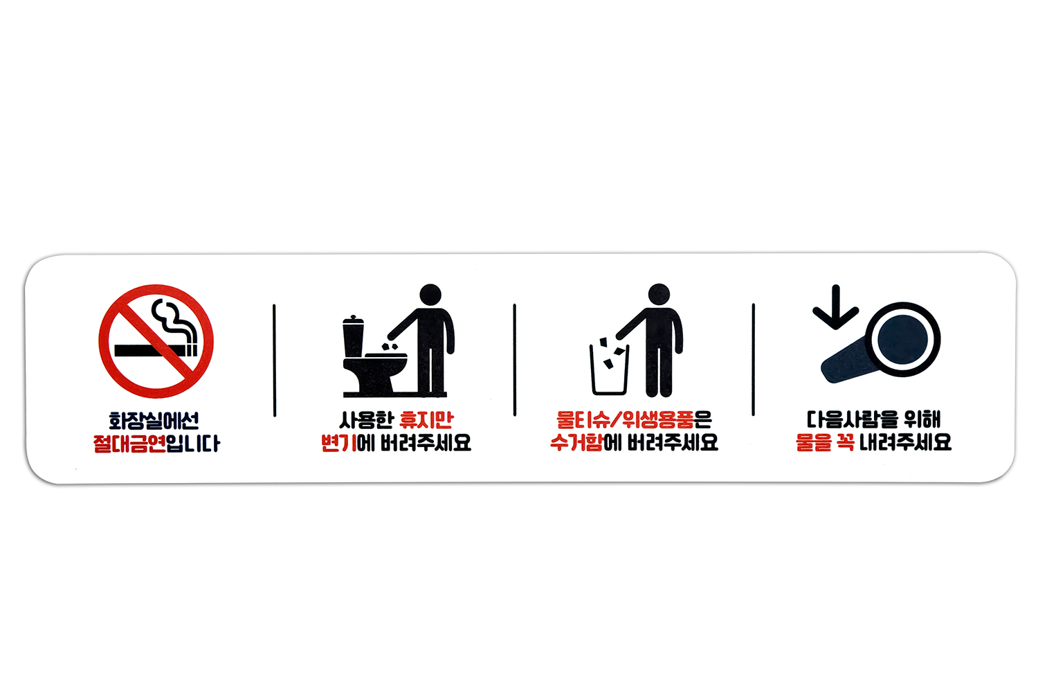 에티켓을 알리기 위해 제작된 제품으로 화장실이나 주거 공간, 상업 시설 등
