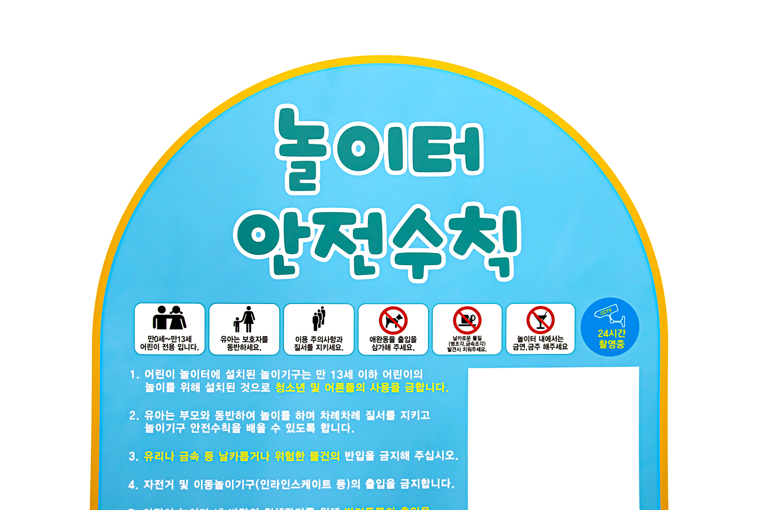 놀이터 주변에 설치하여 기구별 사용법이나 안전 수칙을 기록한 안내판으로