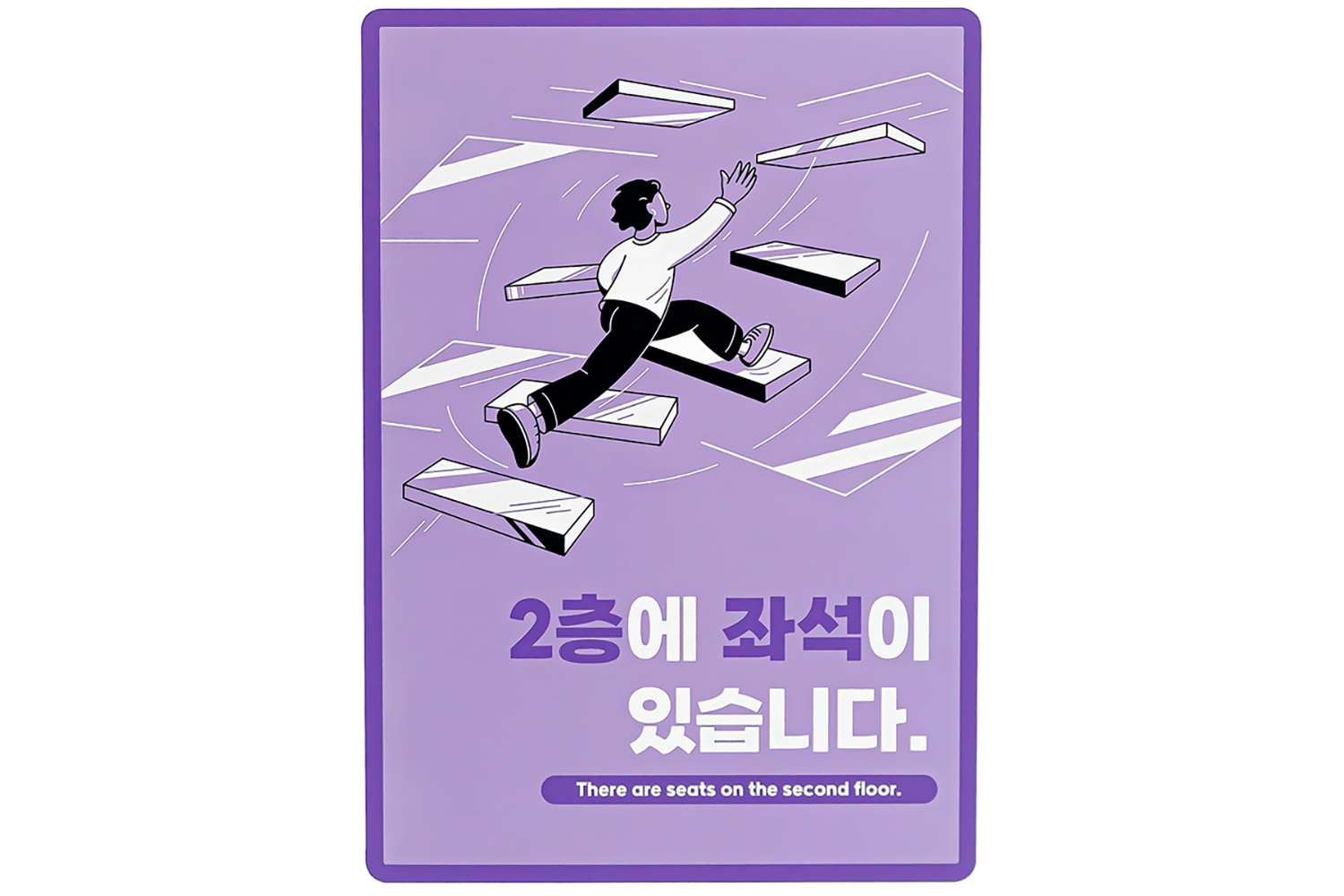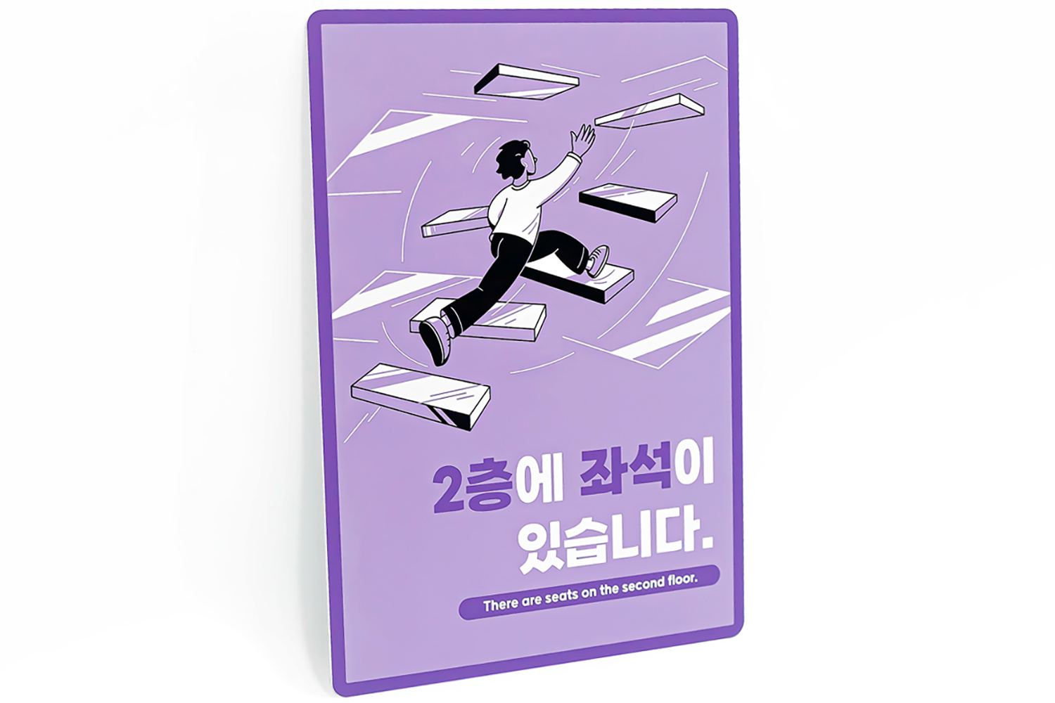 복층으로 된 카페나 식당 등에서 2층 좌석을 안내하기 위해 제작된 안내판으로