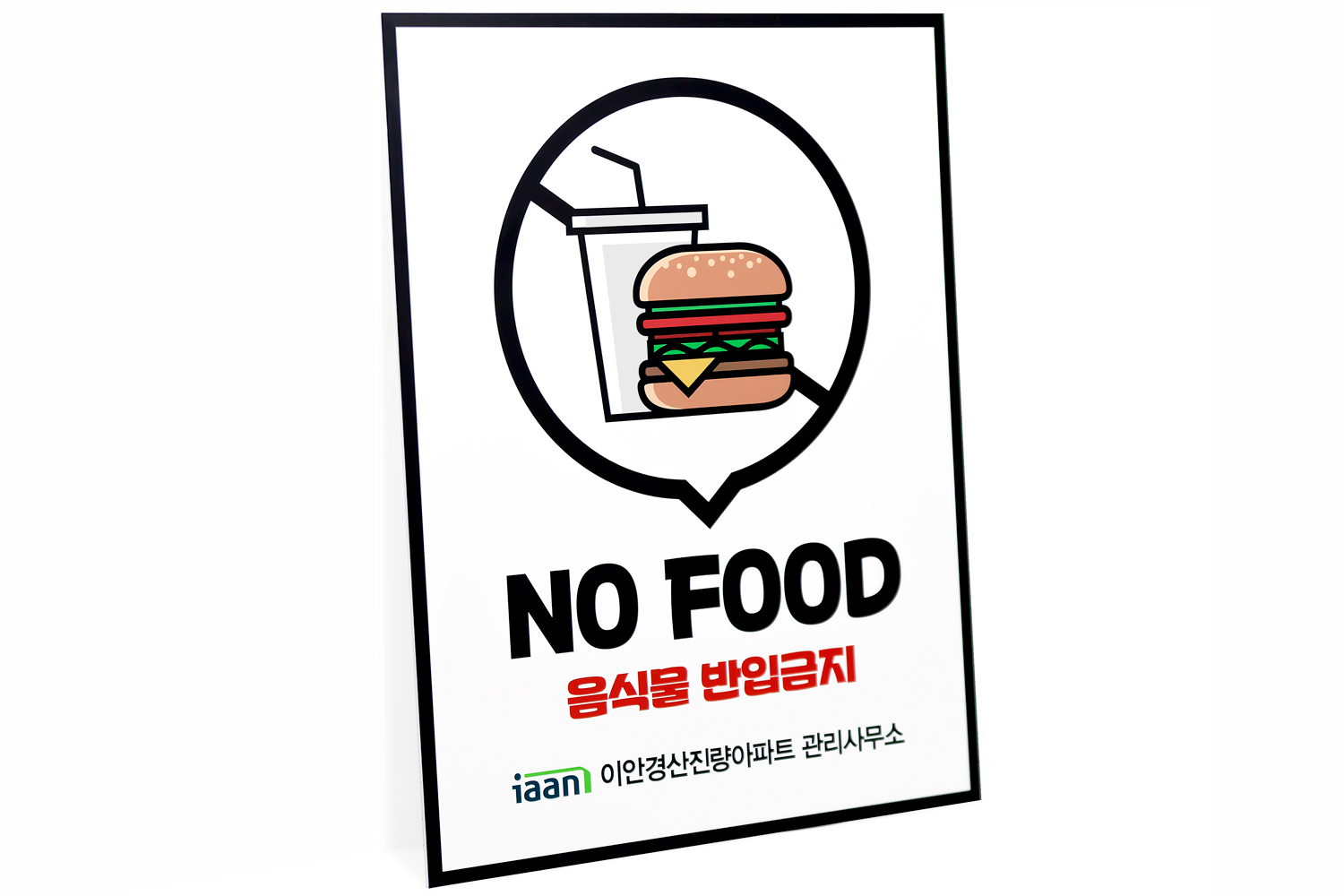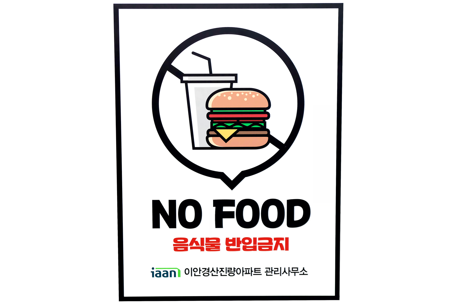 외부 음식 반입이 금지된 장소에서 쉽게 안내하기 위해 제작된 안내판인데요!