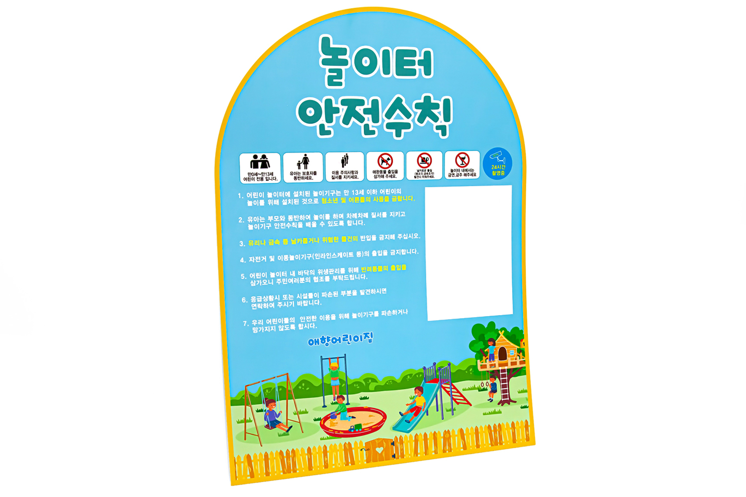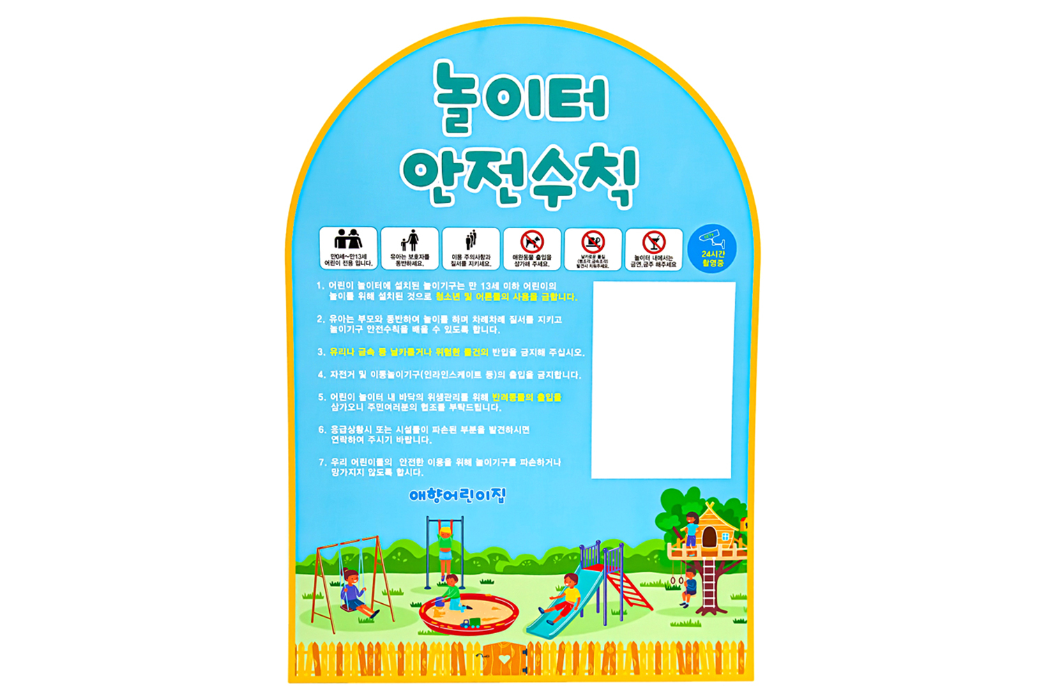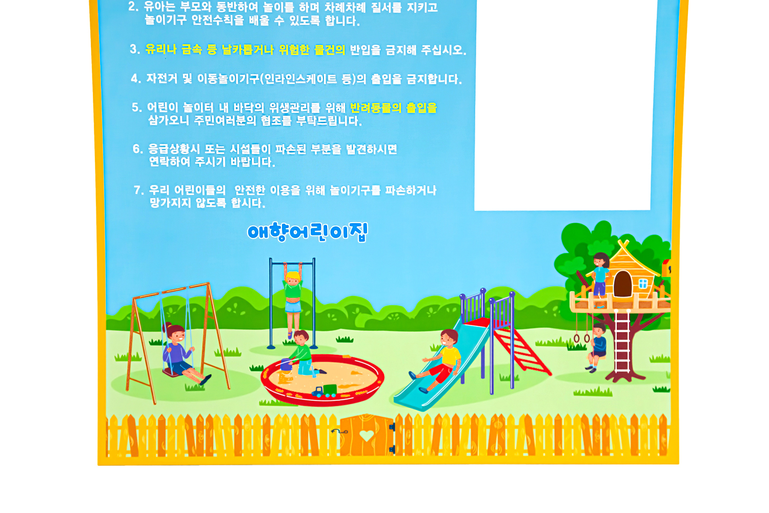 다음은 애향어린이집에서 주문해 주신 놀이터 안전 수칙 안내판입니다!