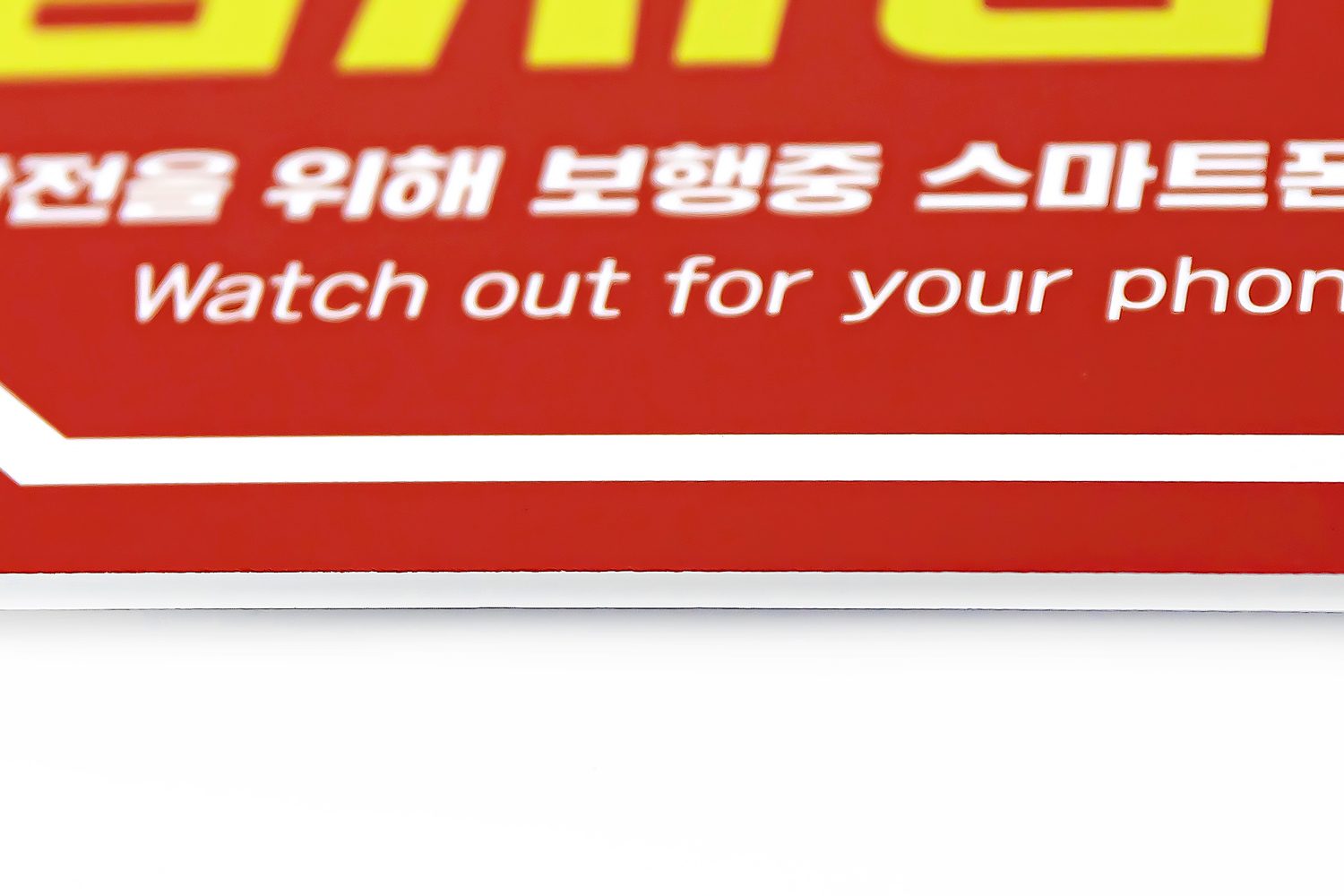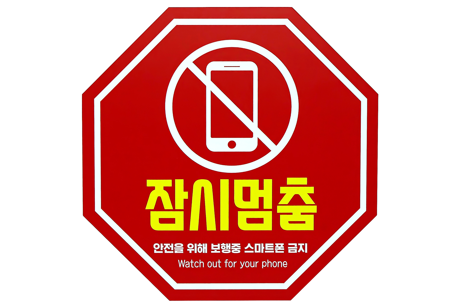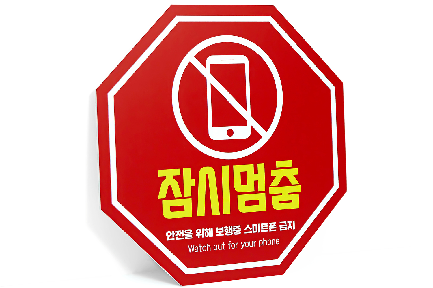 보행 중 스마트폰 사용으로 인한 안전사고를 미리 예방하기 위해 제작된 안내판으로